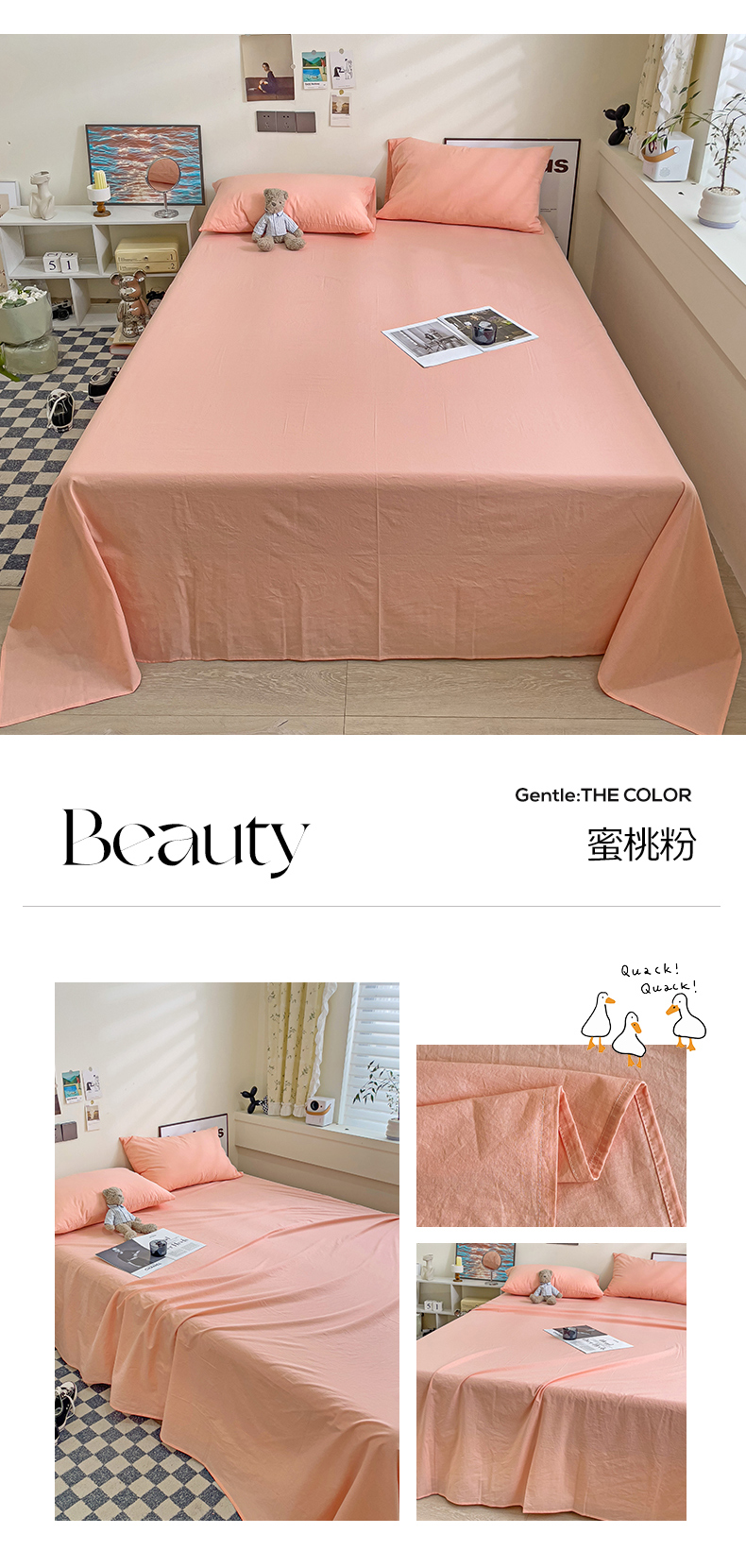 商品名称:六巷胡同 2023新款32支全棉纯色水洗棉单床单 蜜桃粉