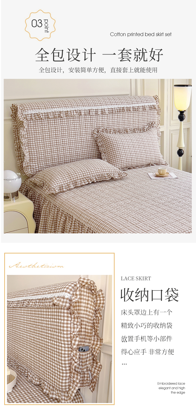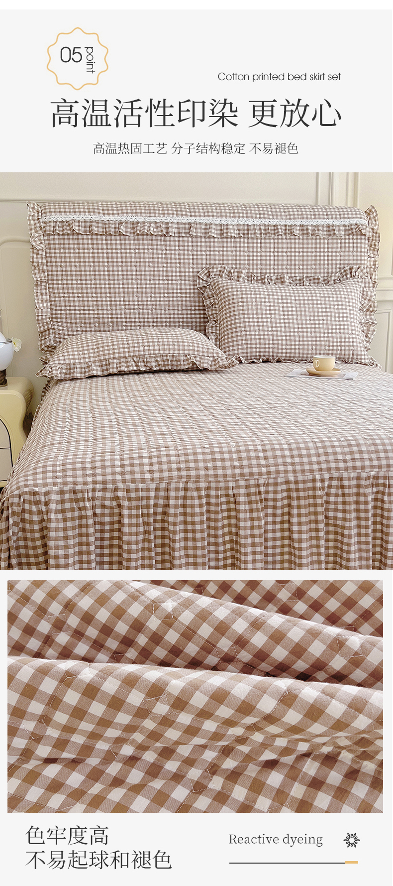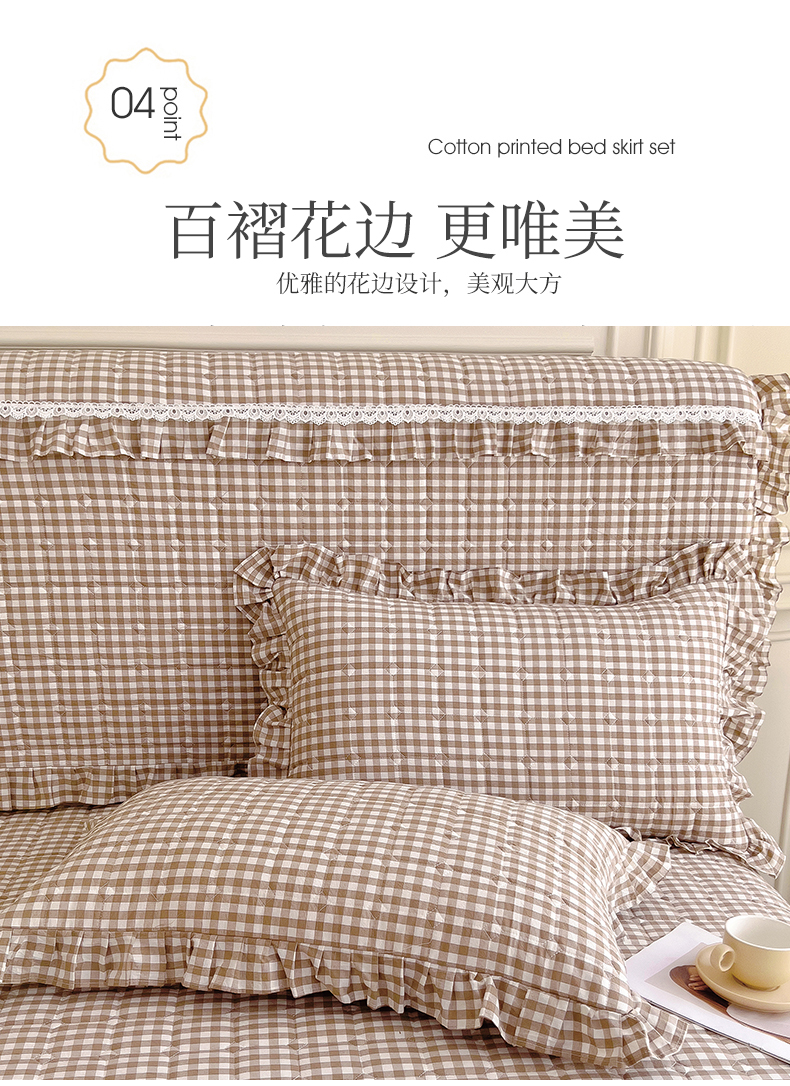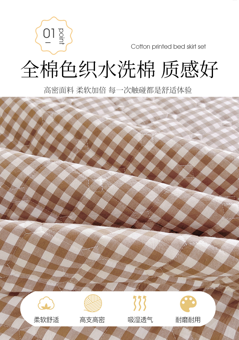 (总)十个点家纺 2025新款加厚磨毛木棉床裙三件套-格小格系列,格小格-粉,格小格-金驼,格小格-咖,格小格-兰,格小格-绿,格小格-玉