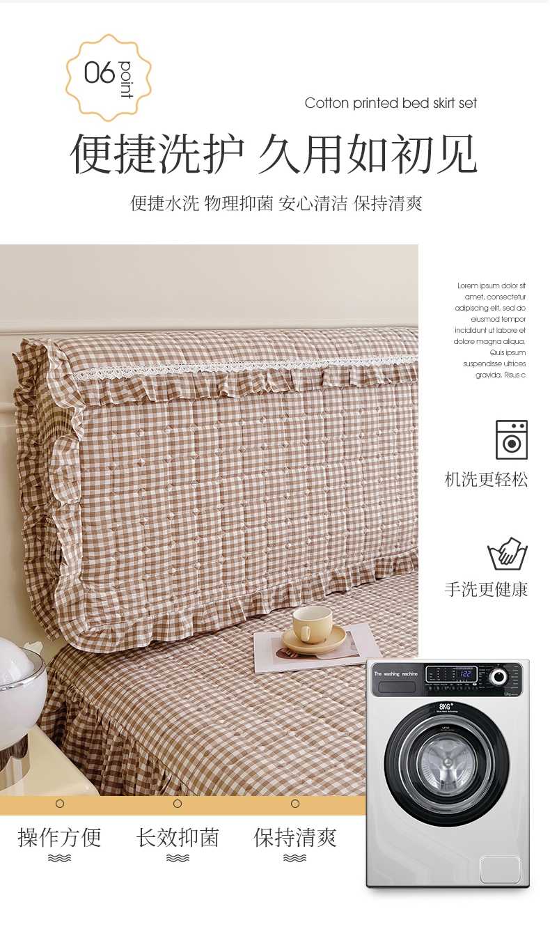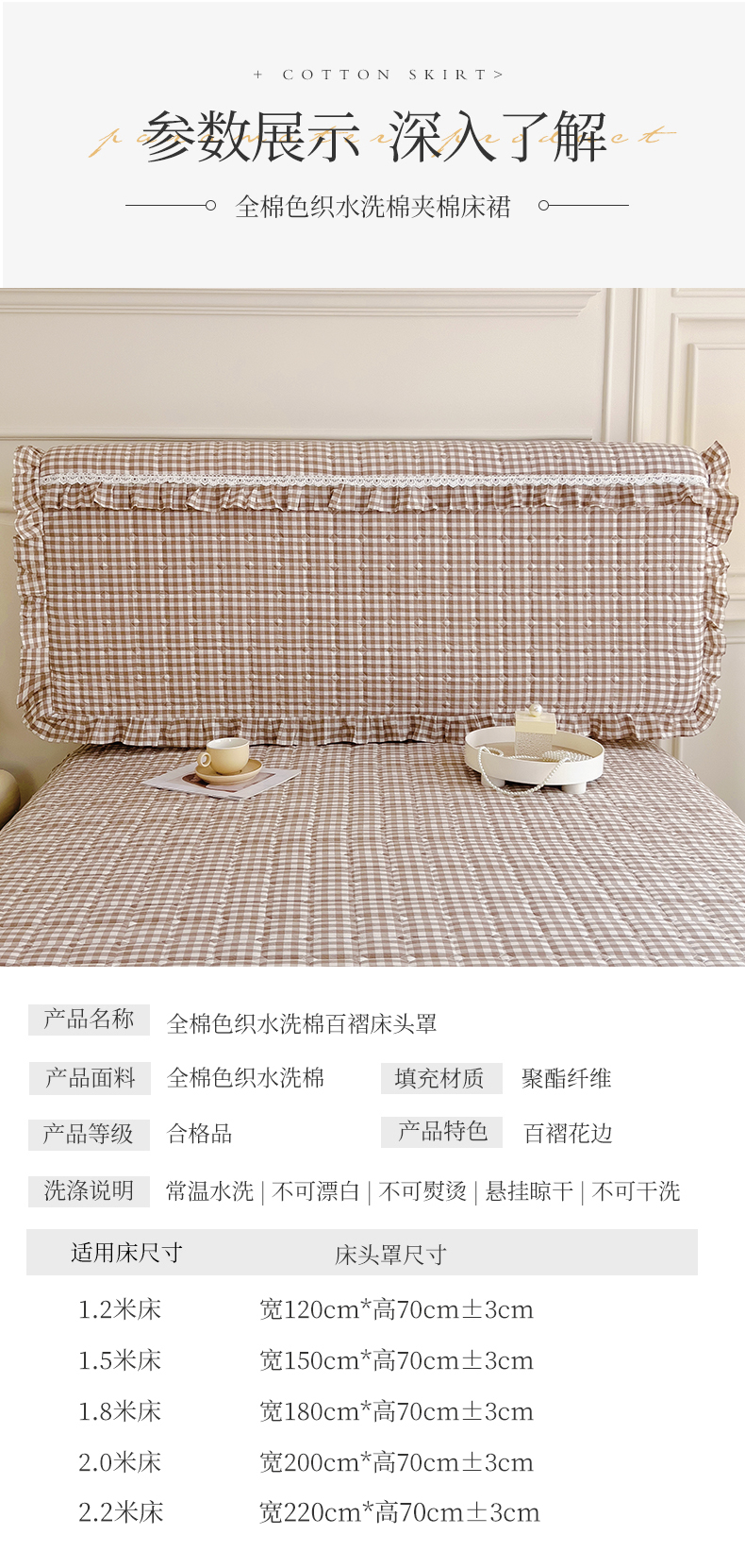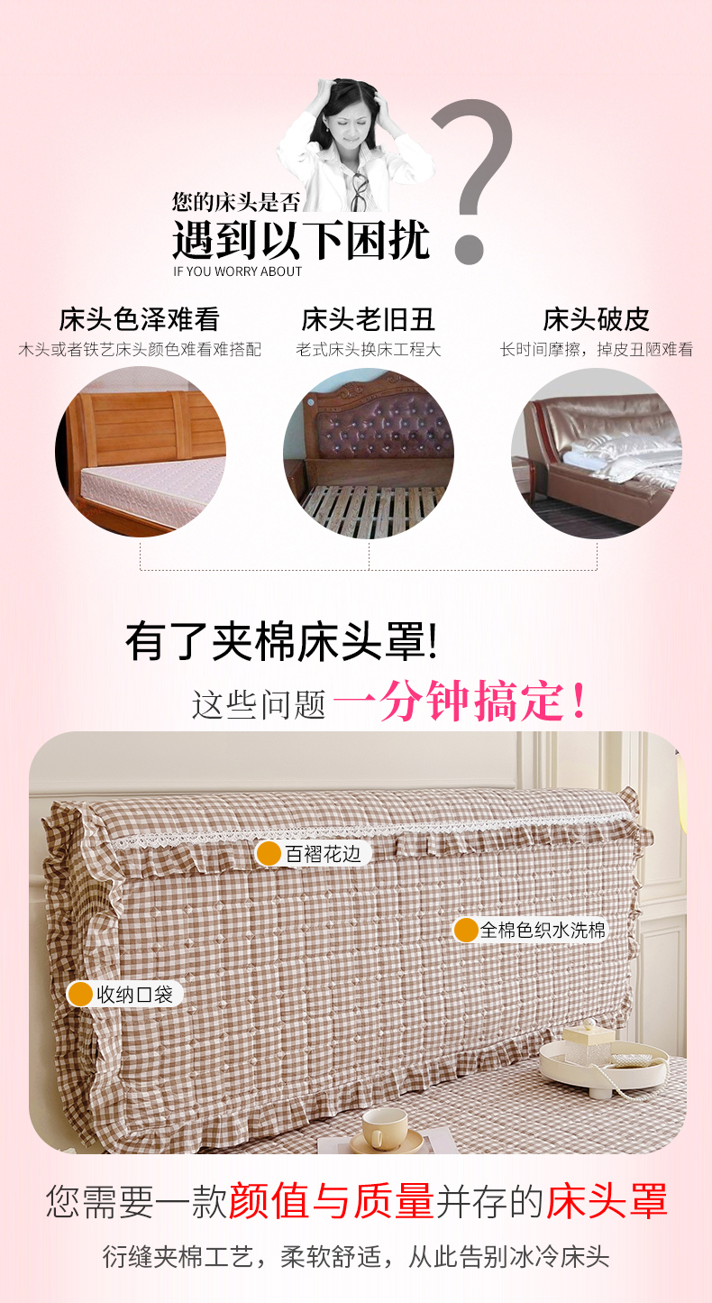 (总)十个点家纺 2025新款千鸟格磨毛绗缝夹棉纯色花边床头罩,经典白色,经典兰色,经典浅灰,经典浅驼,经典深灰,经典玉粉