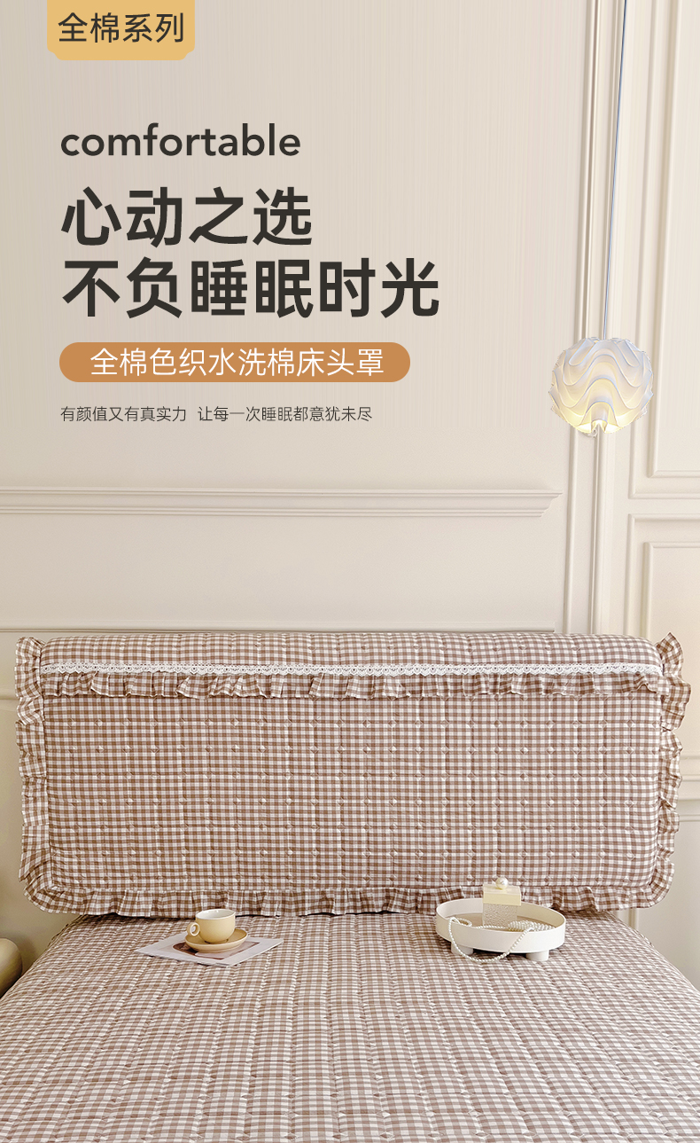 (总)十个点家纺 2025新款公主风夹棉床头罩-格小格系列,格小格-粉,格小格-金驼,格小格-咖,格小格-兰,格小格-绿,格小格-玉