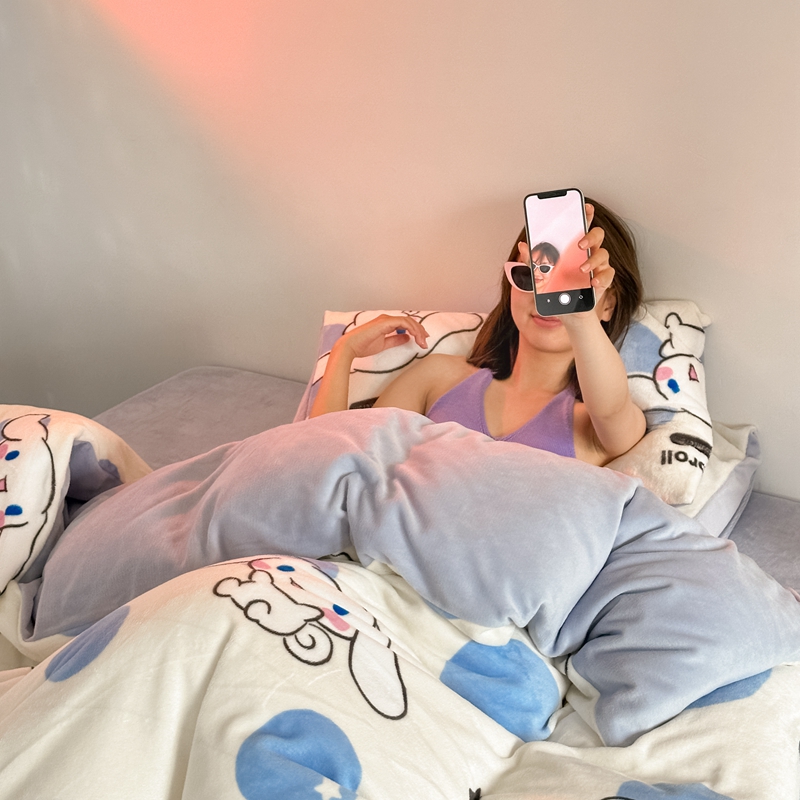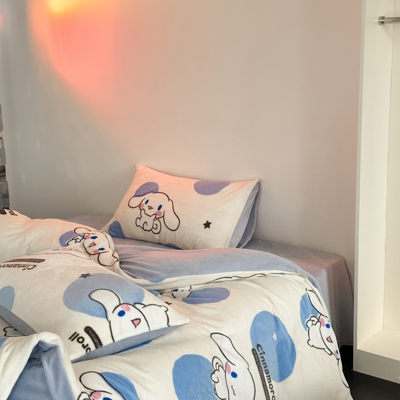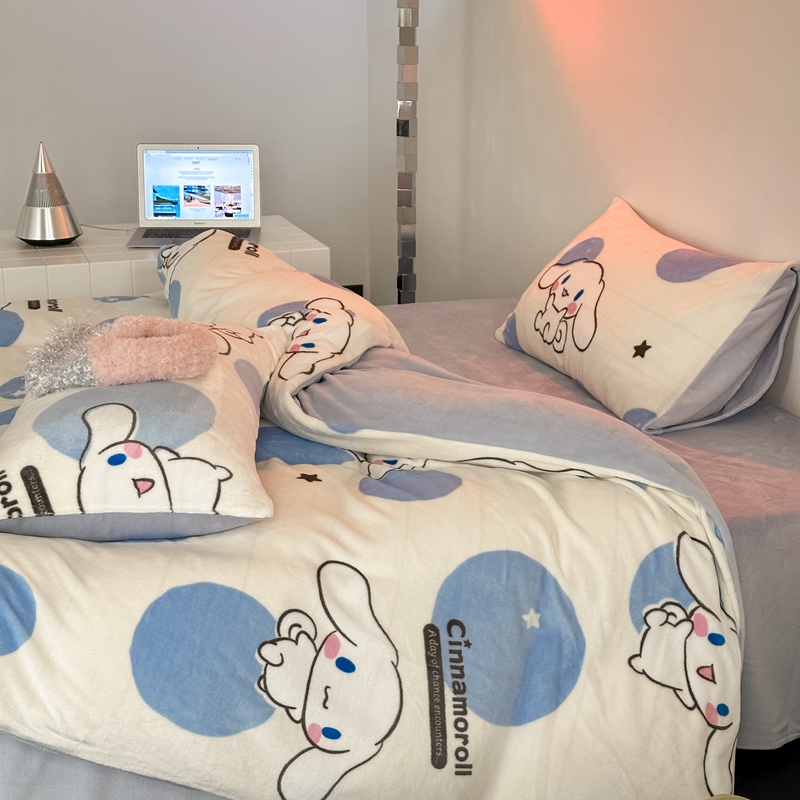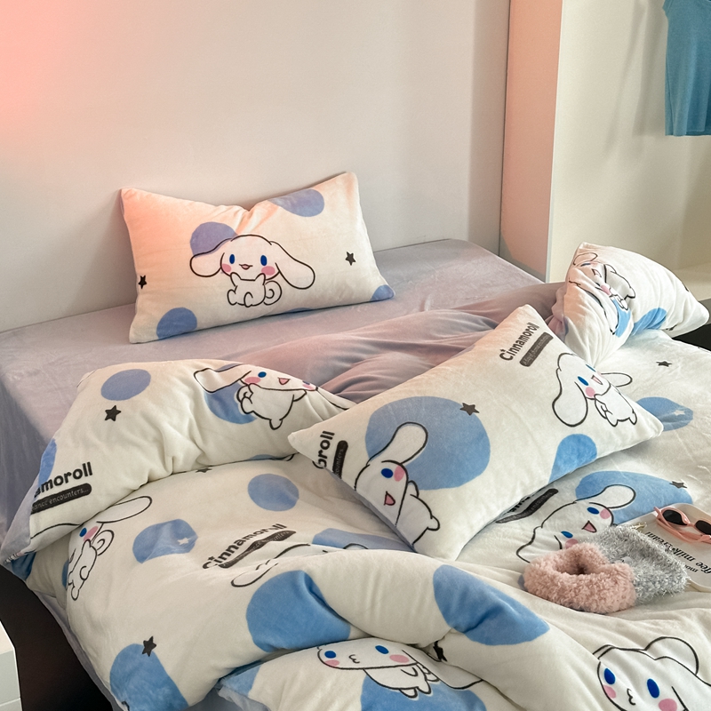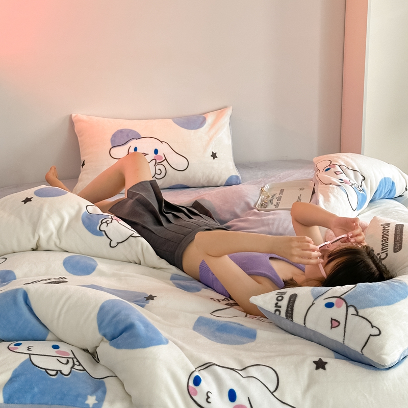 美乐迪家纺 2023新款正版三丽鸥牛奶绒四件套 萌萌玉桂狗