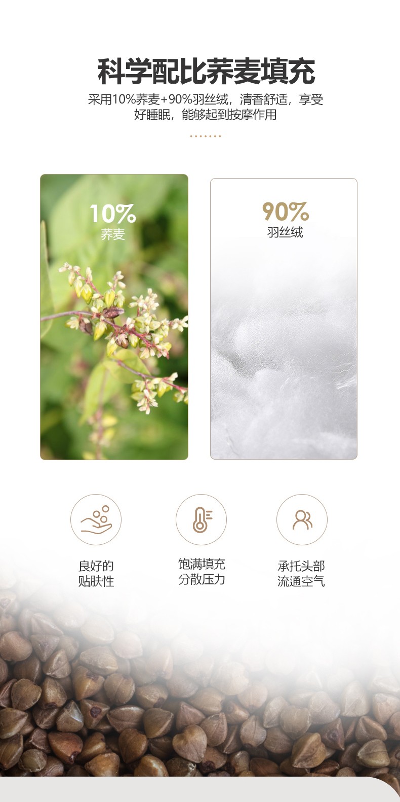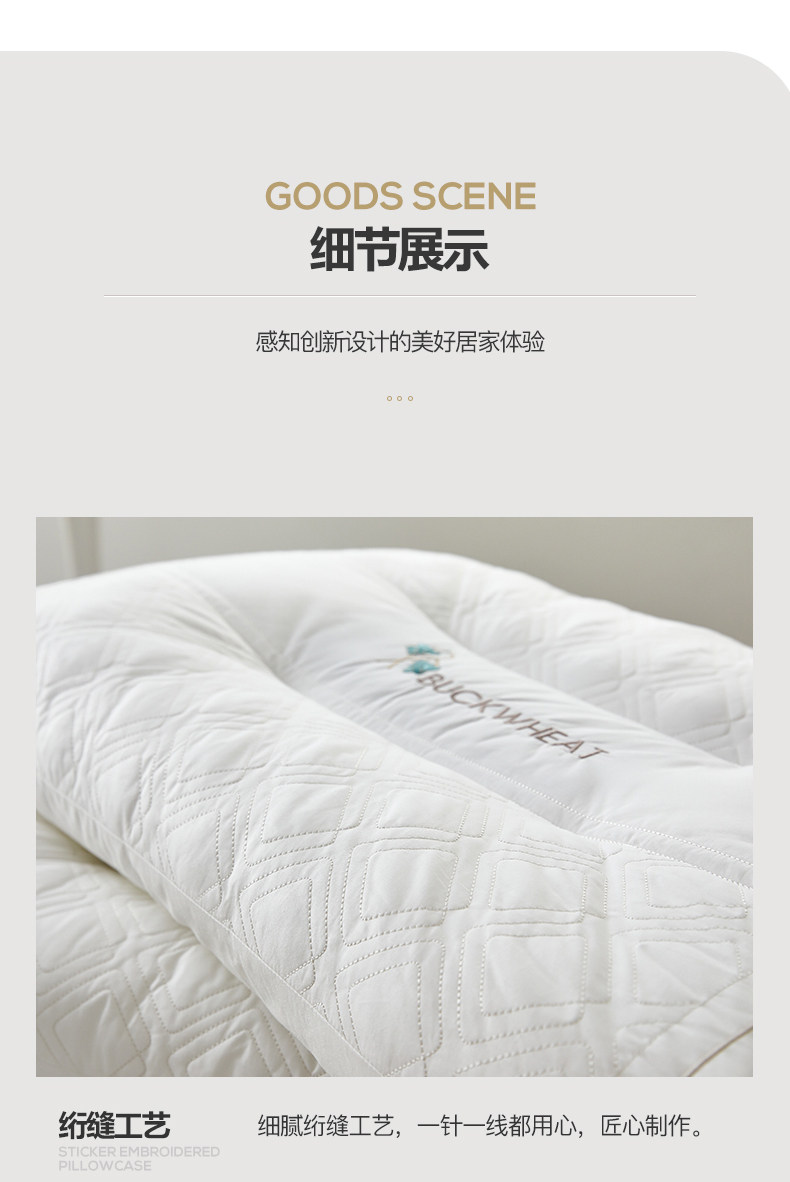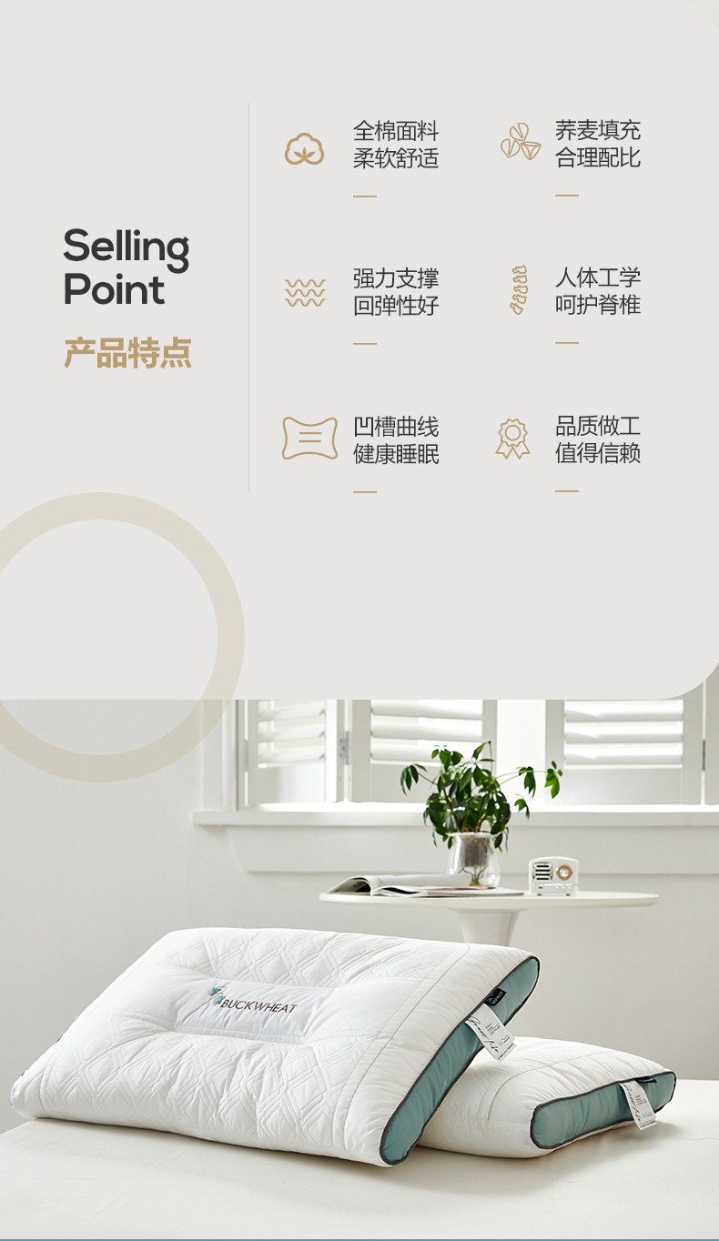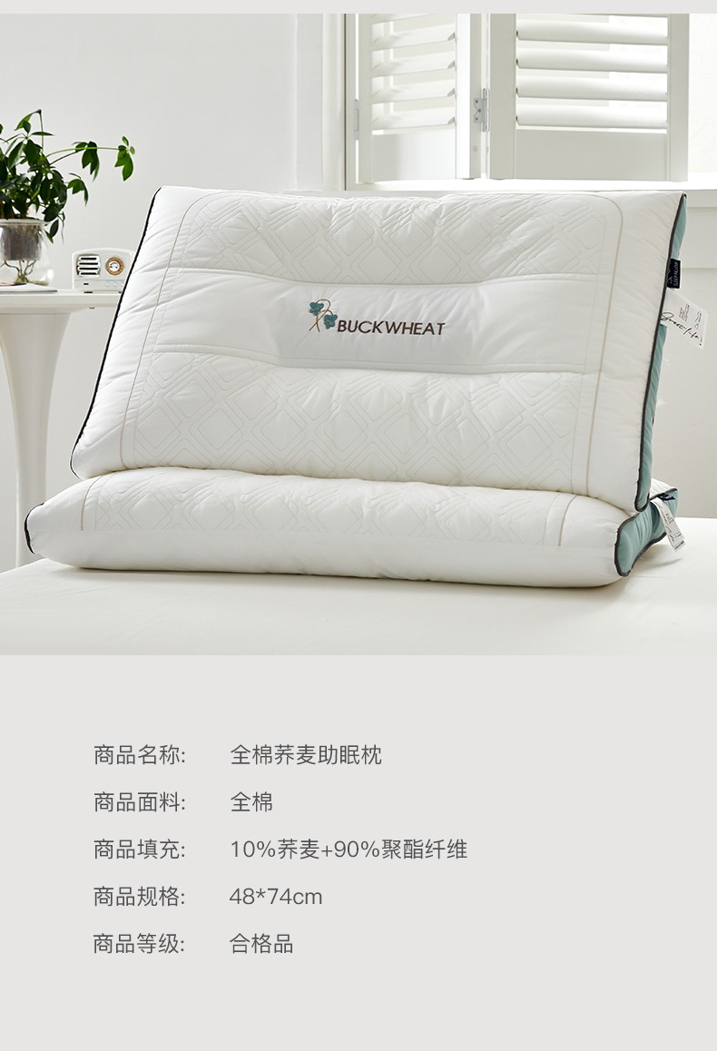 商品名称:(总)2023新款 全棉植物养护荞麦枕头 深度定型助眠枕芯