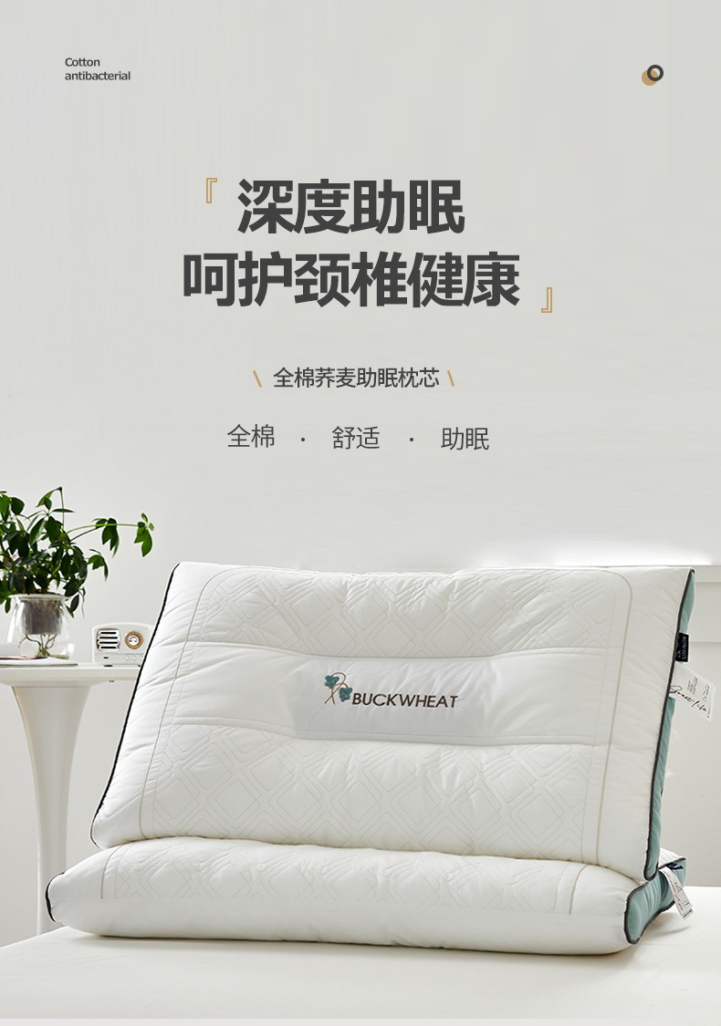 (总)2023新款 全棉植物养护荞麦枕头 深度定型助眠枕芯