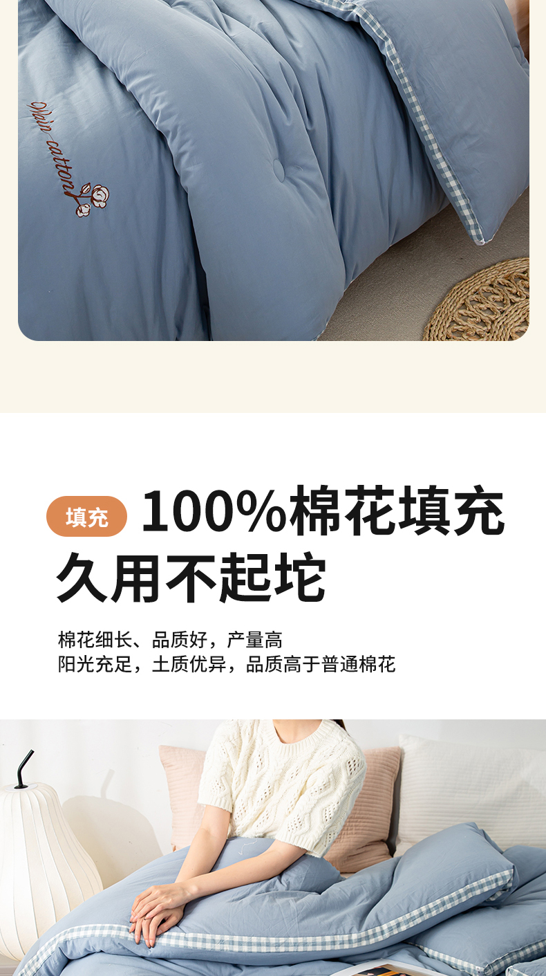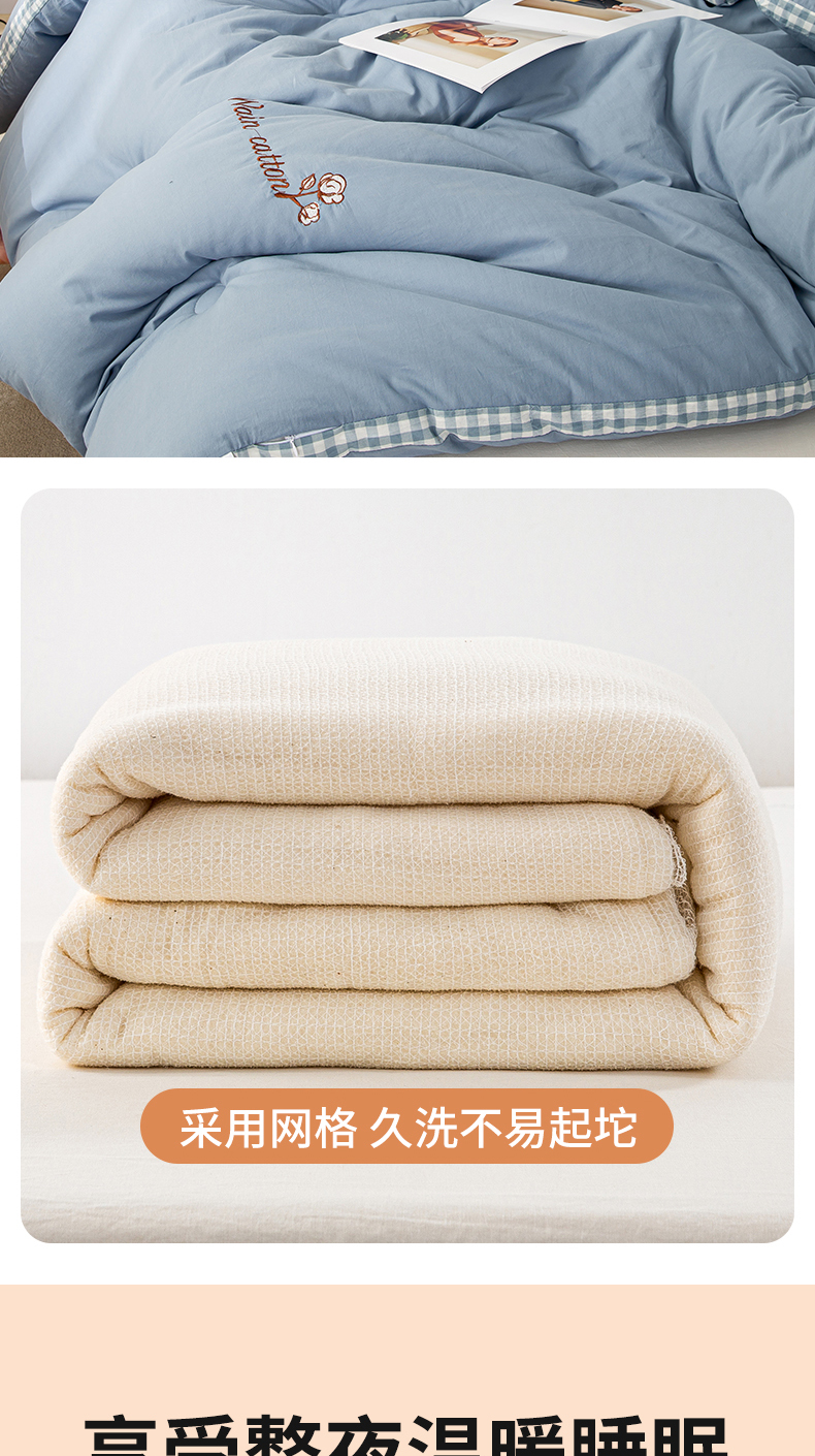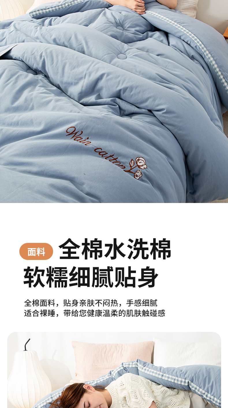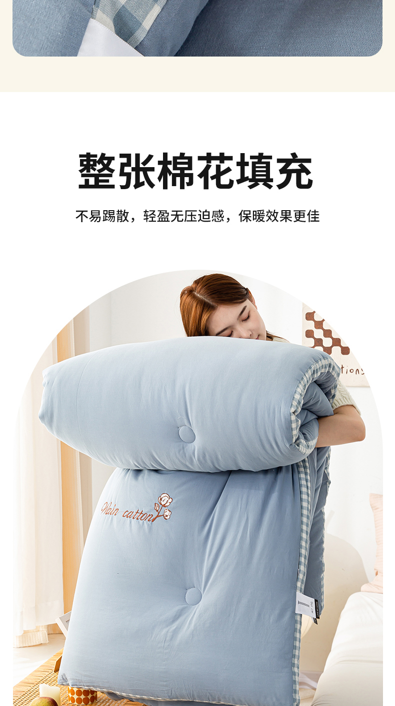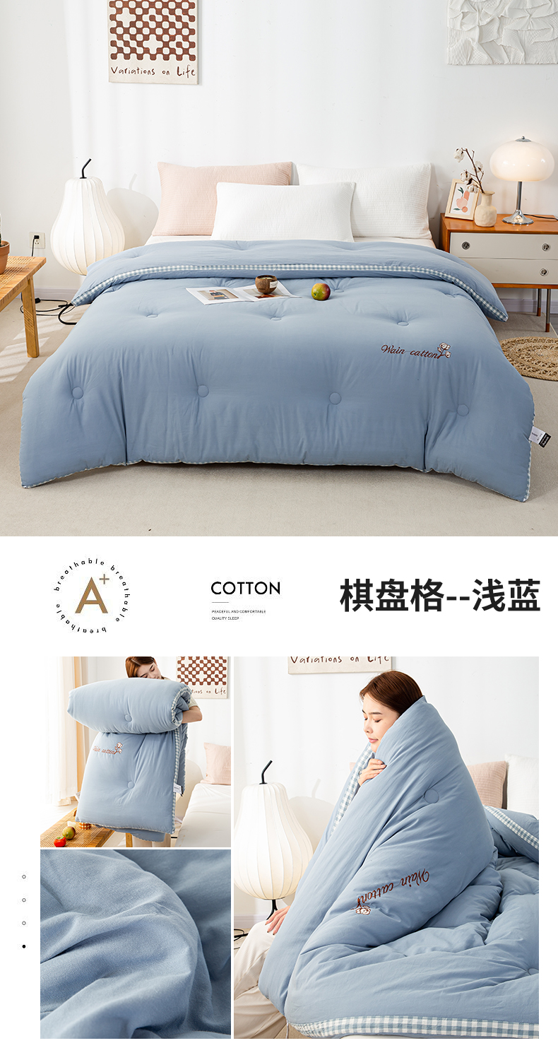 • 91家纺网 家纺一手货源 找家纺 鸣升家纺 新款棋盘格全棉色织水洗棉棉花被冬被被子被芯 棋盘格--浅蓝
