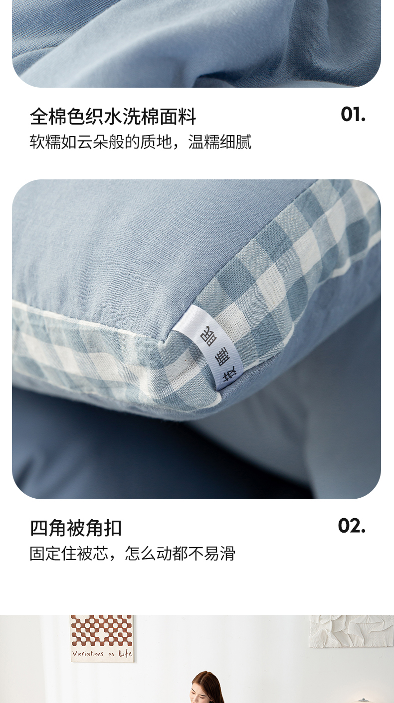 (总)鸣升家纺 2026新款全棉色织水洗棉贝壳边棉花空调被夏凉被夏被四件套,果绿,姜黄,莎粉,天空蓝,月光灰,组合图仅供参考不可下单