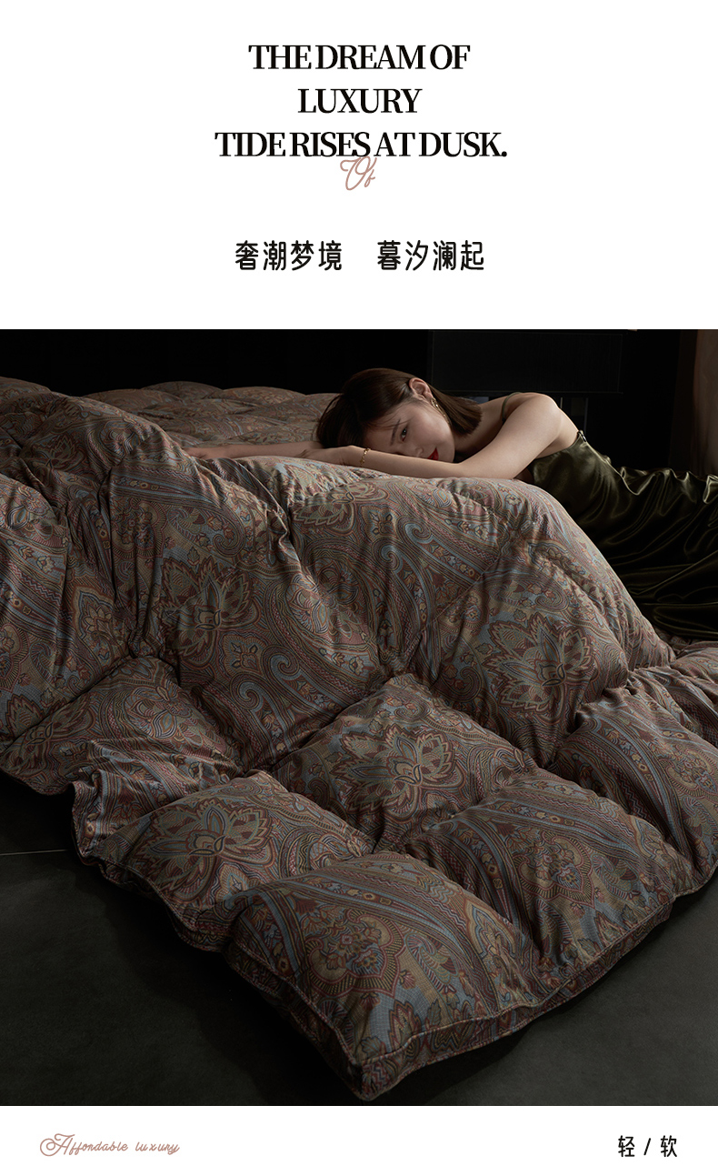 (总)岚司羽 2025新款花好月圆鹅绒被 被子被芯,花好月圆 酒红色,花好月圆 香槟色