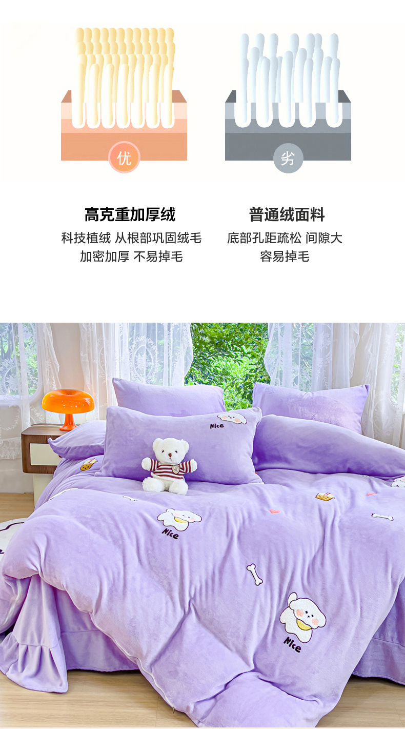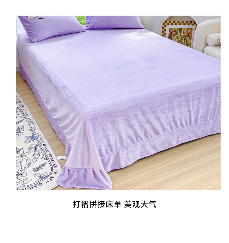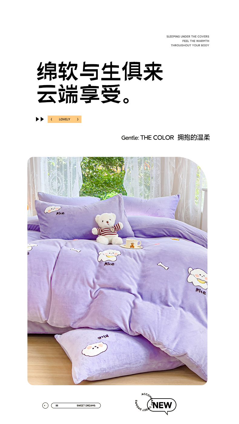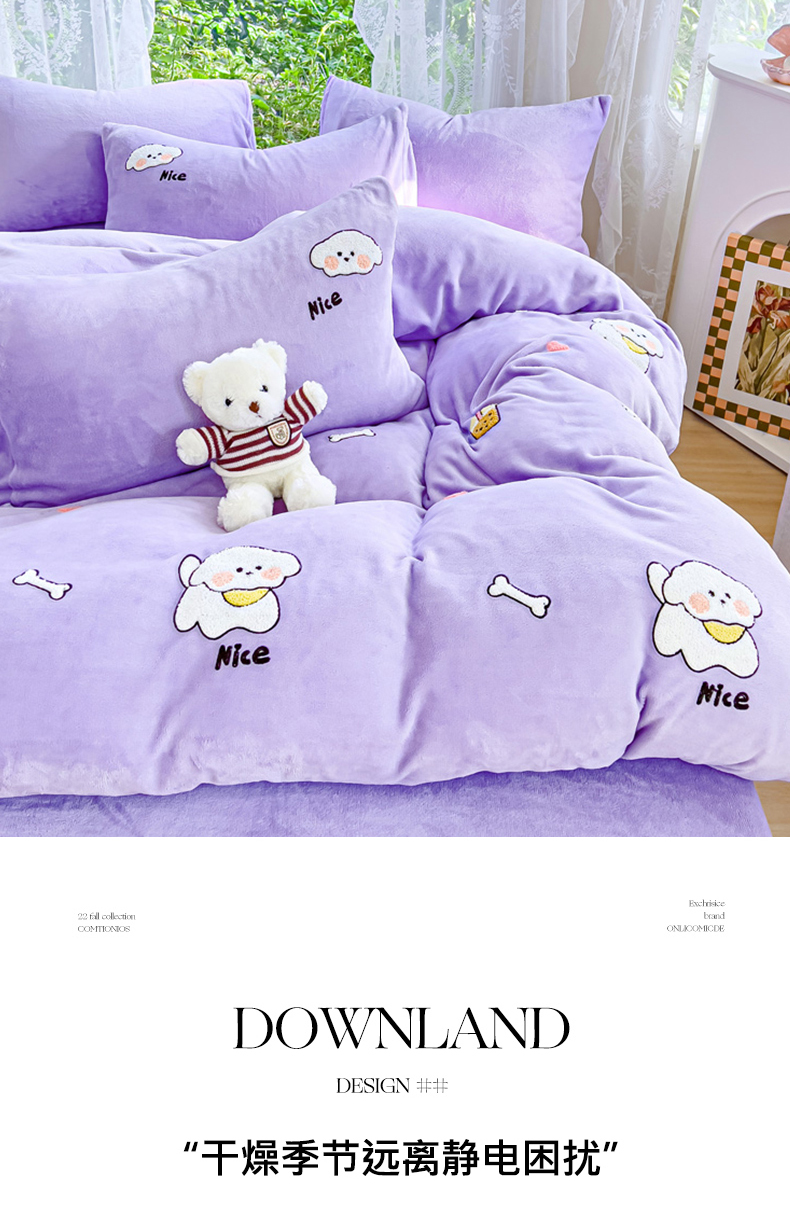 商品名称:米瑞娜 2024新款纯色毛巾绣牛奶绒四件套 皮皮狗-紫