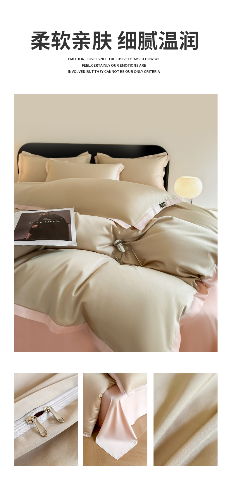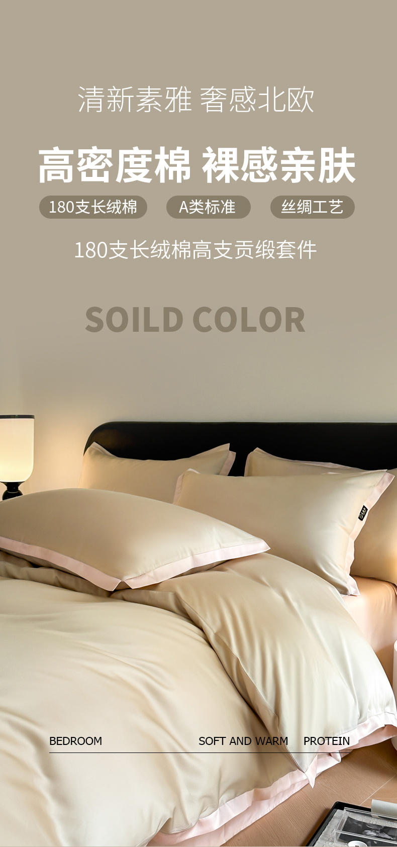 当前位置: 91家纺网 > 商品网购 > 床品套件 > 四件套 > 长绒棉四件套 > 618家纺2023新款180支长绒棉高支贡缎四件套 安迪-卡其粉玉