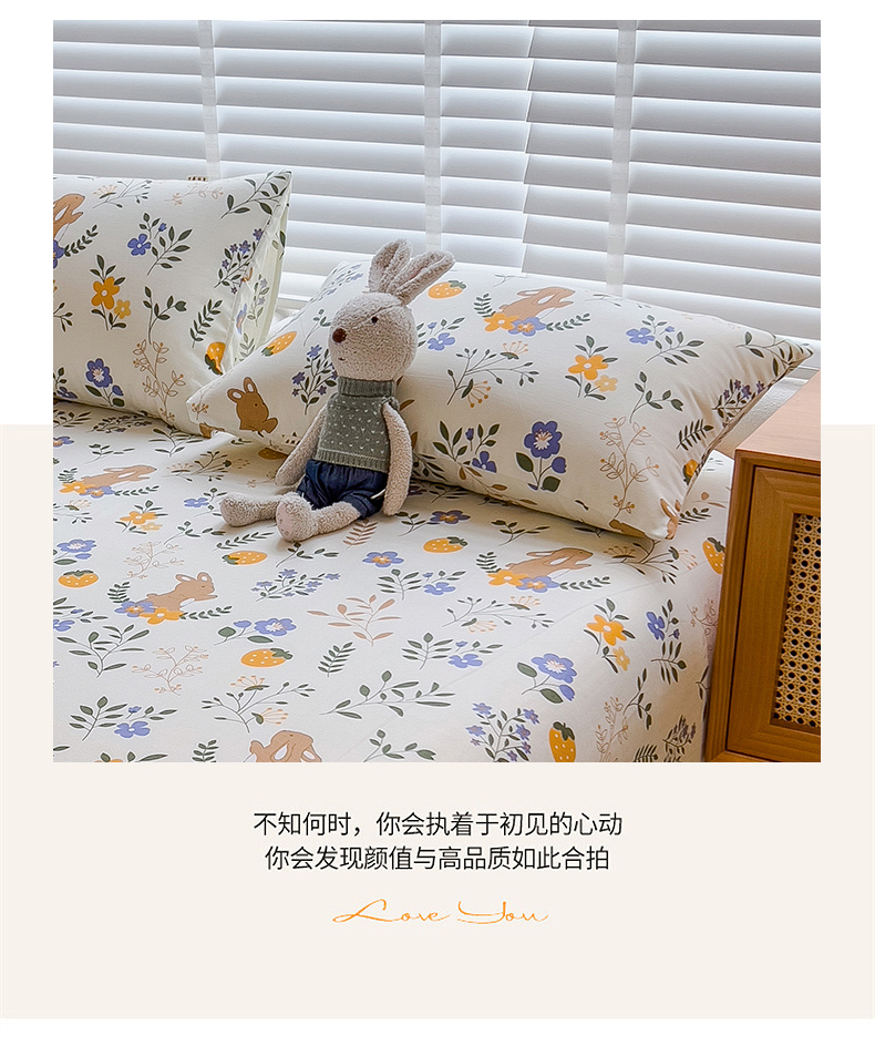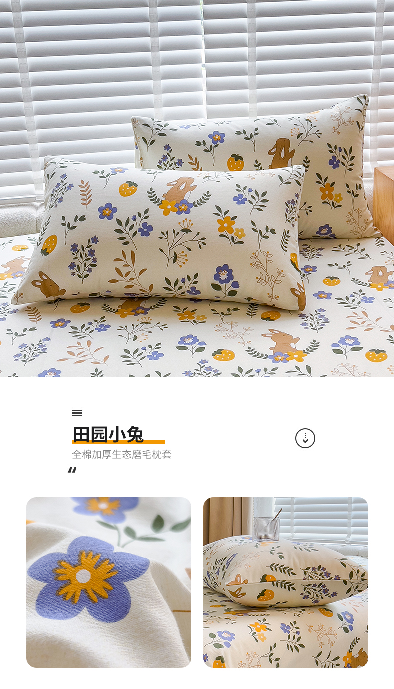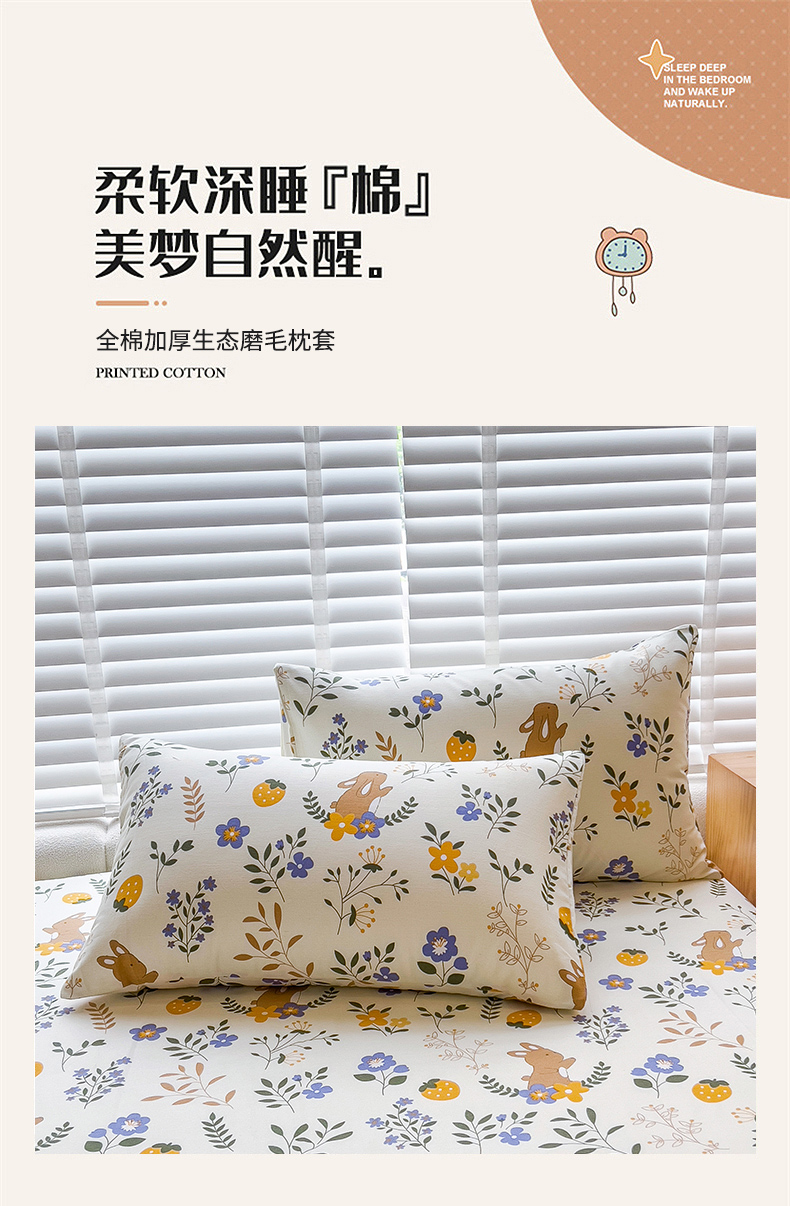 芃成家纺 2023新款磨毛系列磨毛枕套 田园小兔