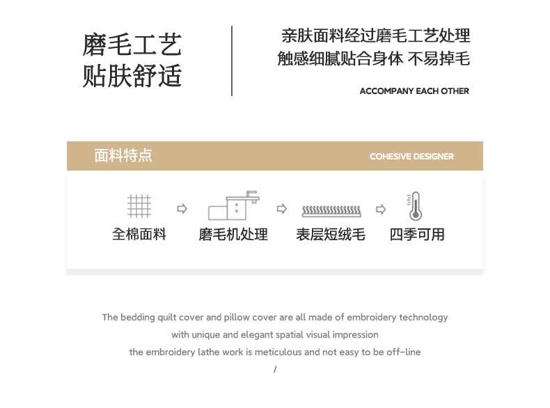 N先生 2023秋冬新款全棉加厚磨毛四件套-简爱系列 简爱-豆沙