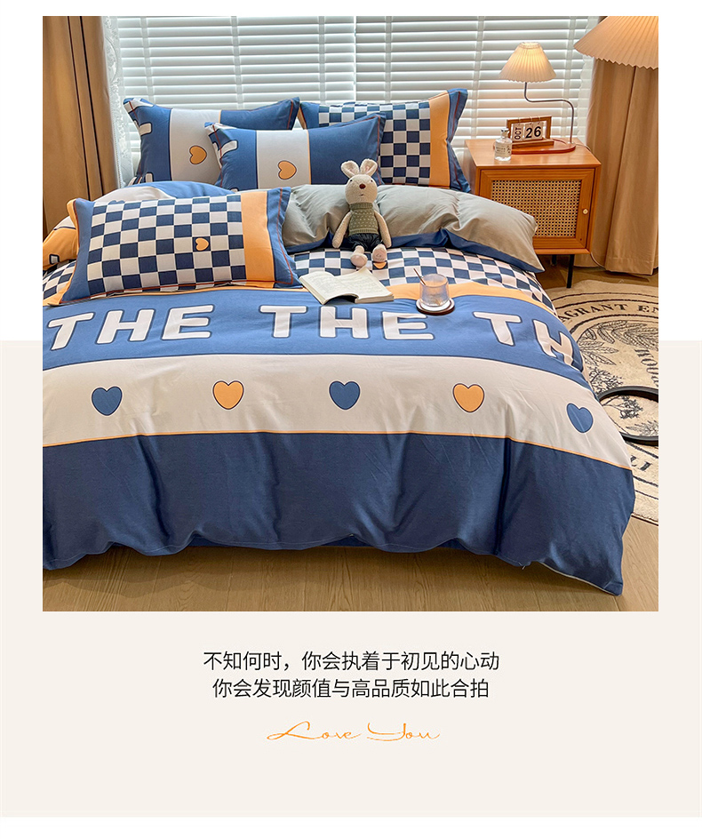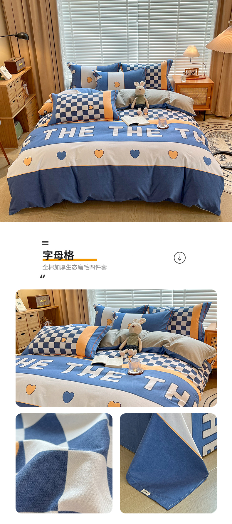 商品名称:芃成家纺 2023新款磨毛四件套 字母格