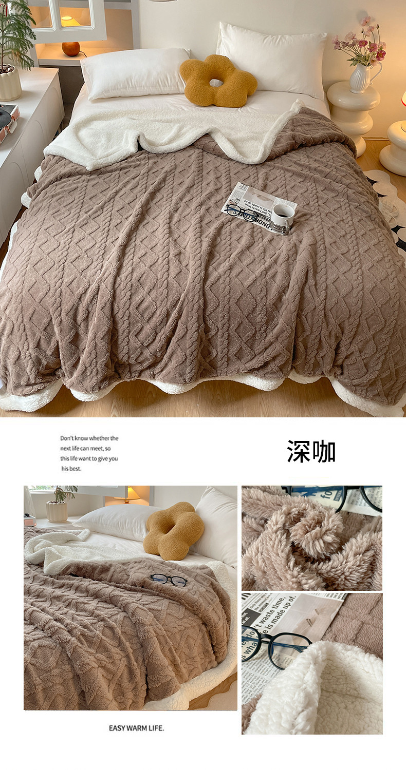 欧邦 新款爆款AB版加厚提花塔芙绒羊羔绒毛毯 深咖