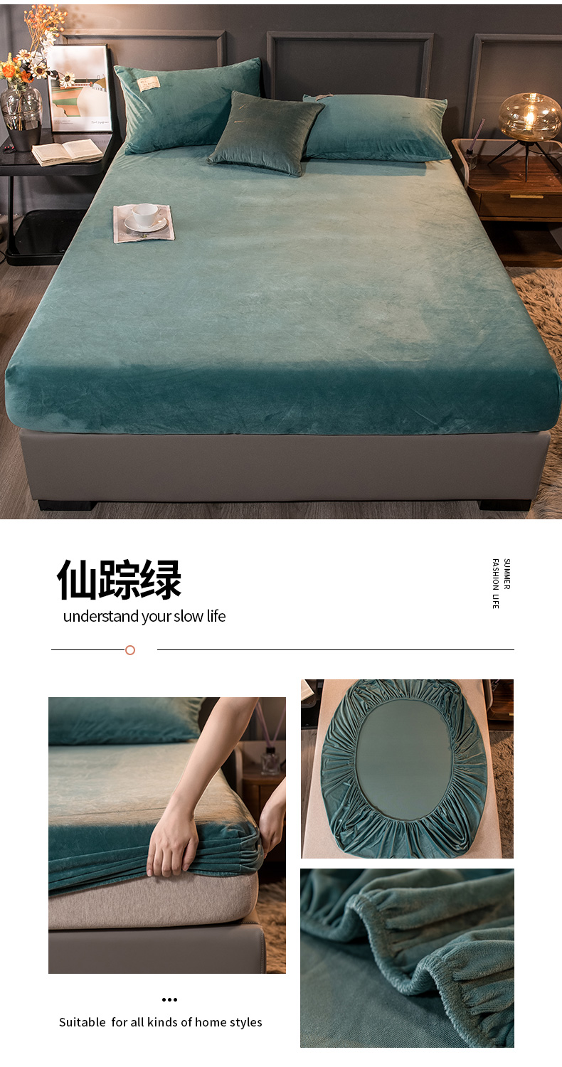 商品名称:全季家居 2023新款高克重水晶绒床笠 仙踪绿