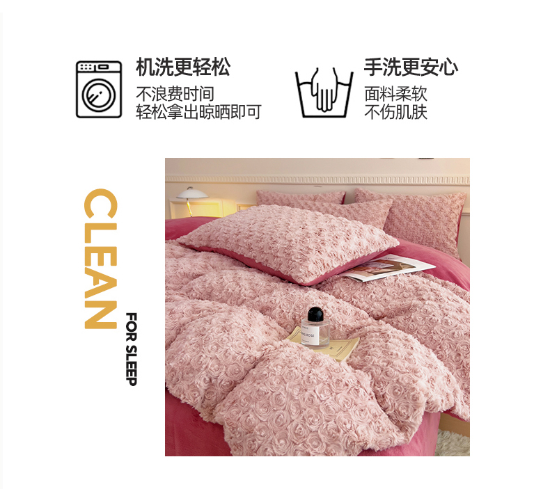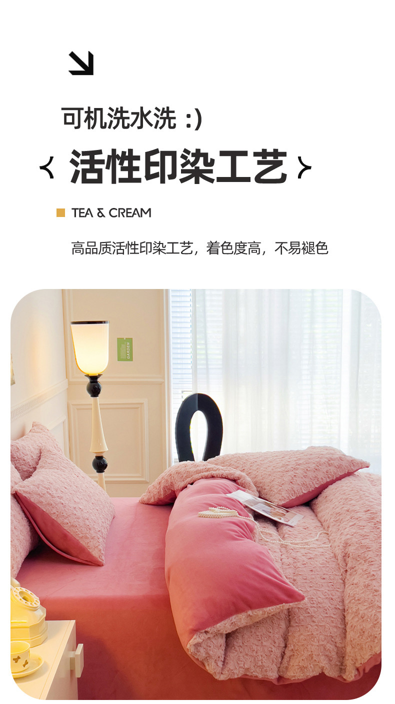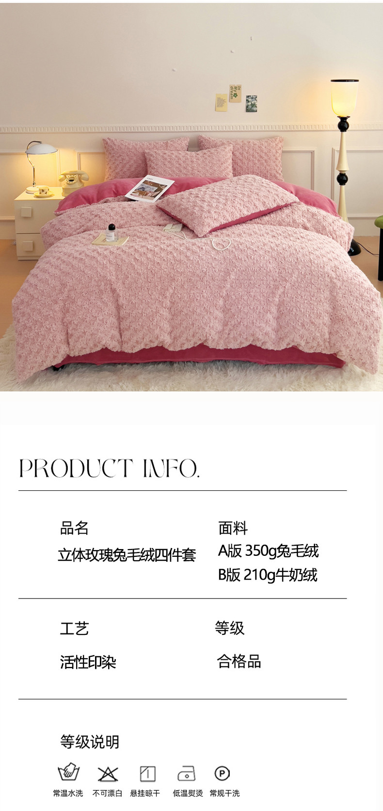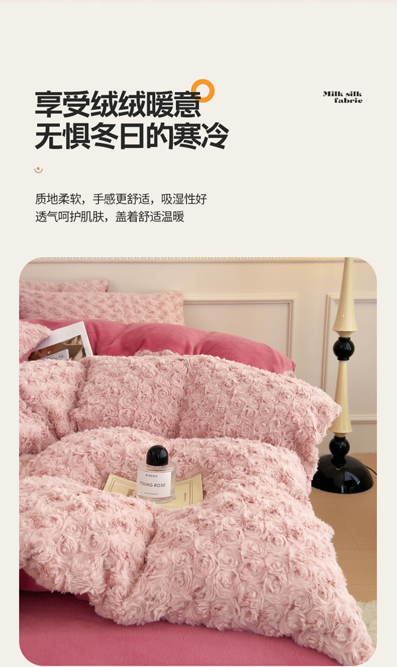 商品名称:宜家坊 2023新款立体玫瑰兔毛绒四件套 玫瑰兔毛-豆沙