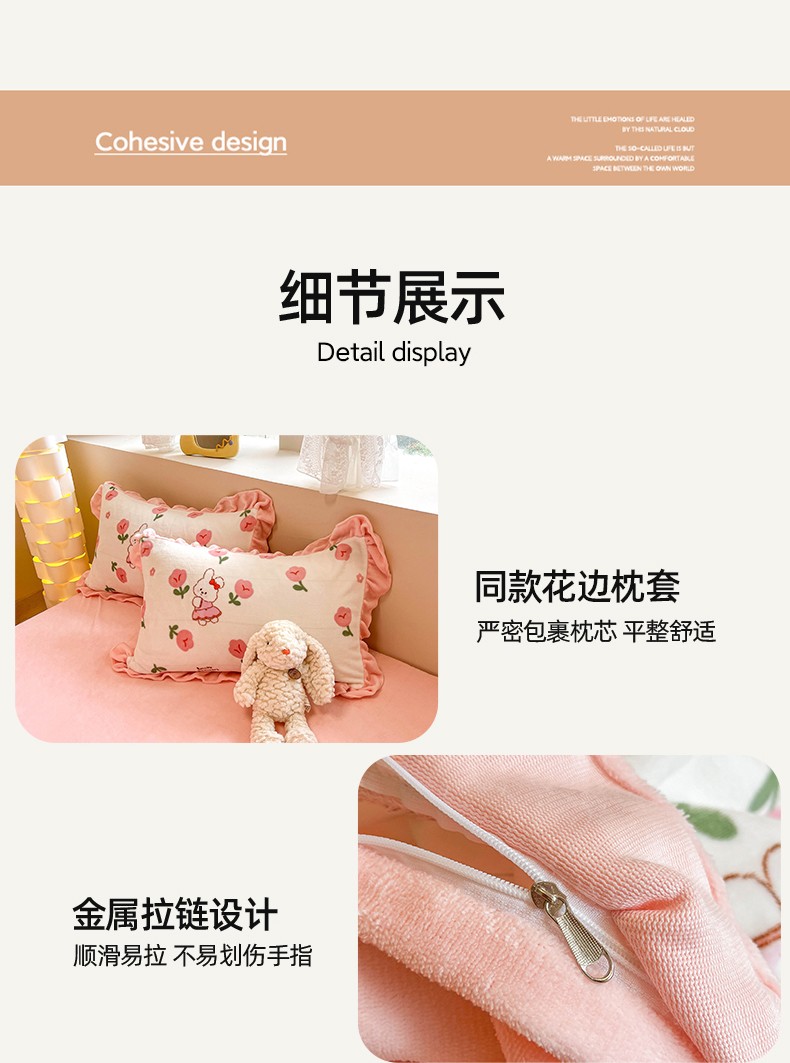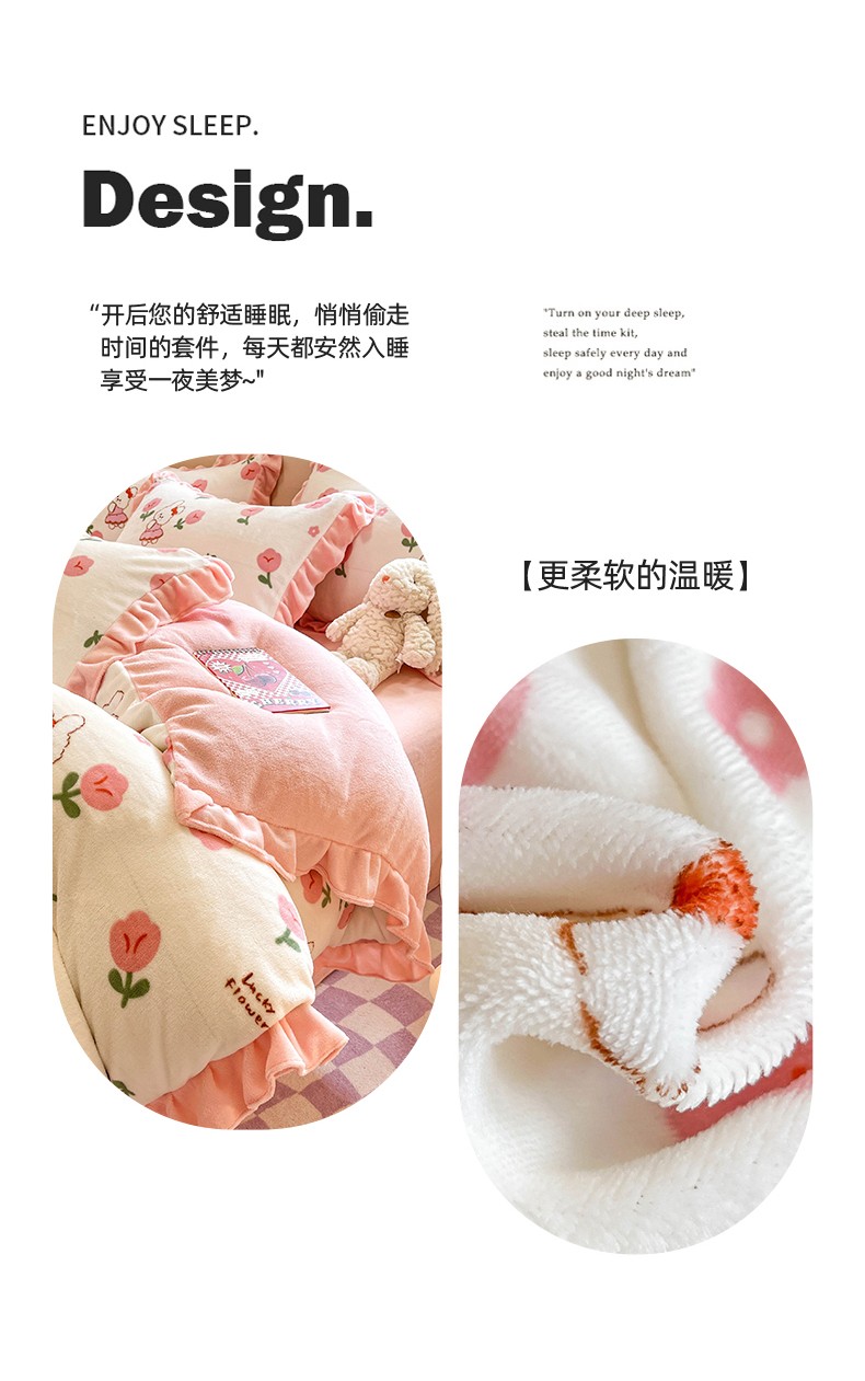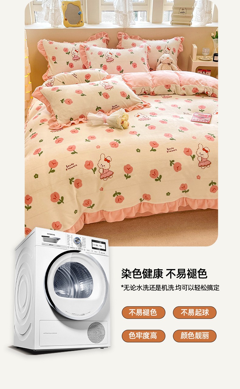 (总)米莱家纺 2025新款兔毛绒花边牛奶绒四件套,彩色圆点,繁花,粉黛,蝴蝶结,咖圆点,可爱兔,可爱熊,蔷薇