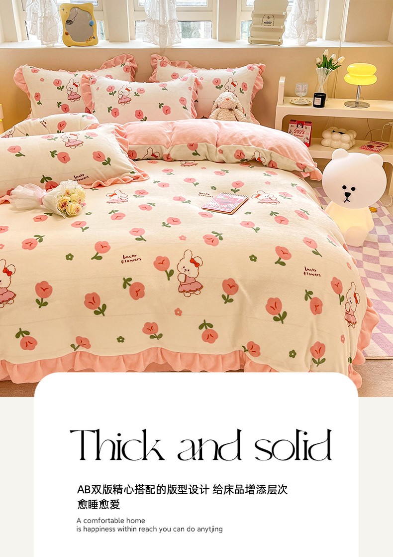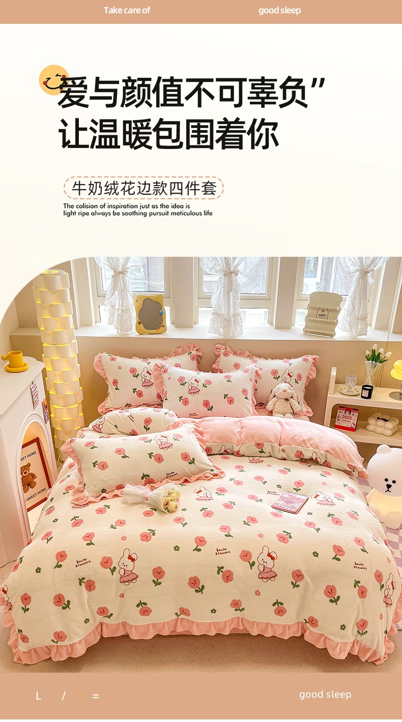 米莱 2023新款印花韩版牛奶绒四件套 花园小兔
