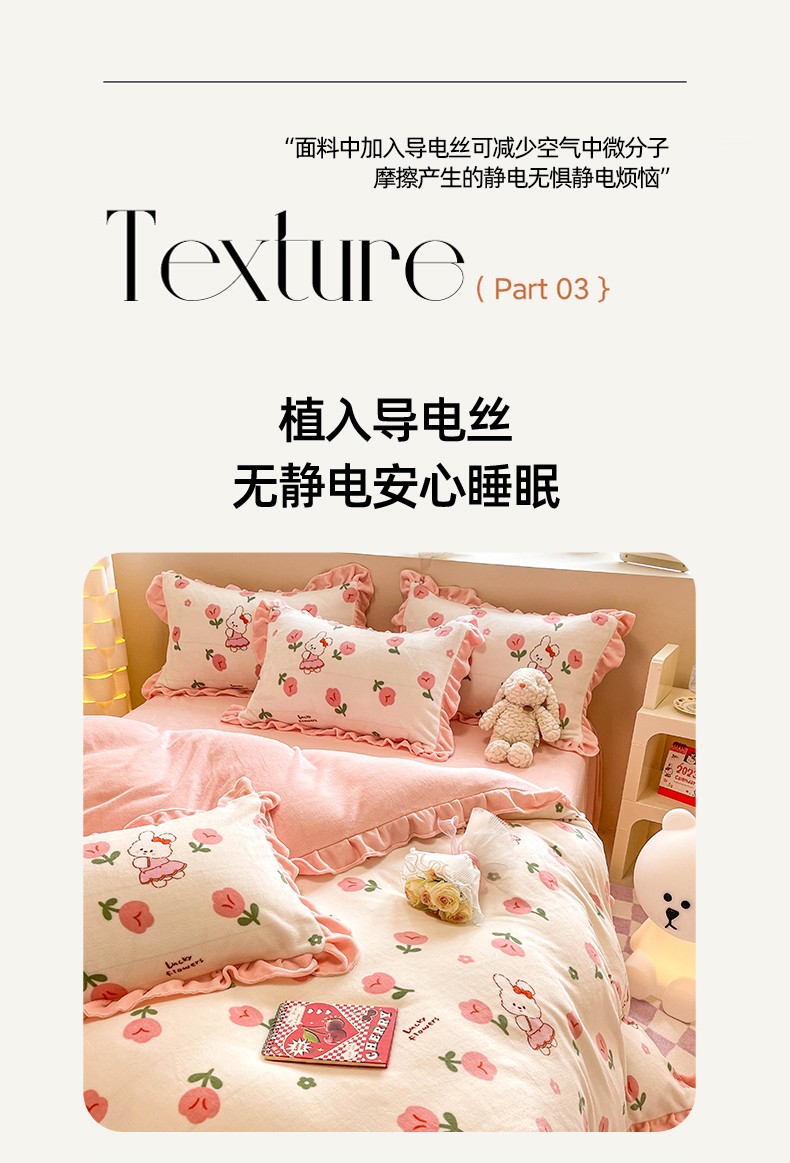 (总)米莱家纺 2025新款牛奶绒印花花边四件套,童趣乐园,草莓甜心,粉白波点,蓝色蝴蝶节,奶茶小美,你好小兔,泡泡糖女孩,少女蝴蝶节,甜美小狗