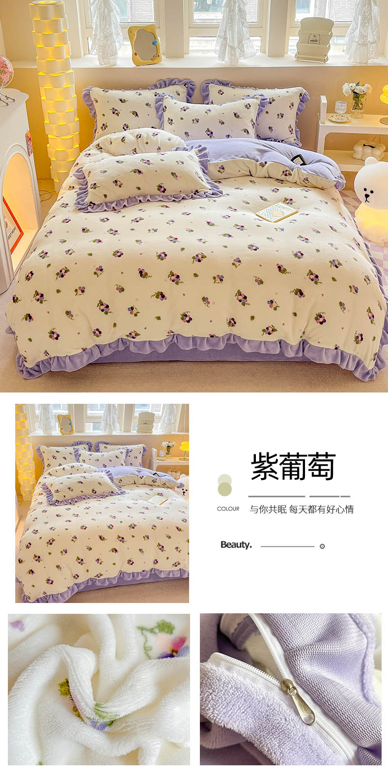 商品名称:米莱 2023新款印花韩版牛奶绒四件套 紫葡萄