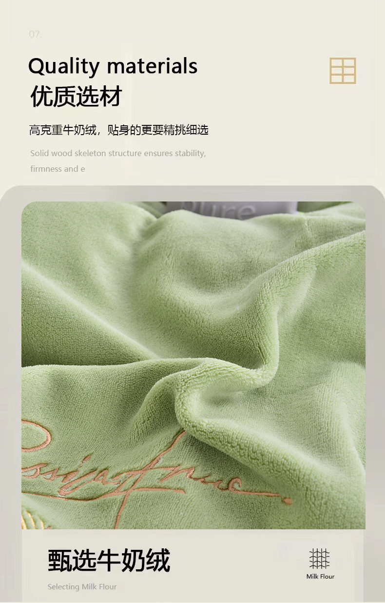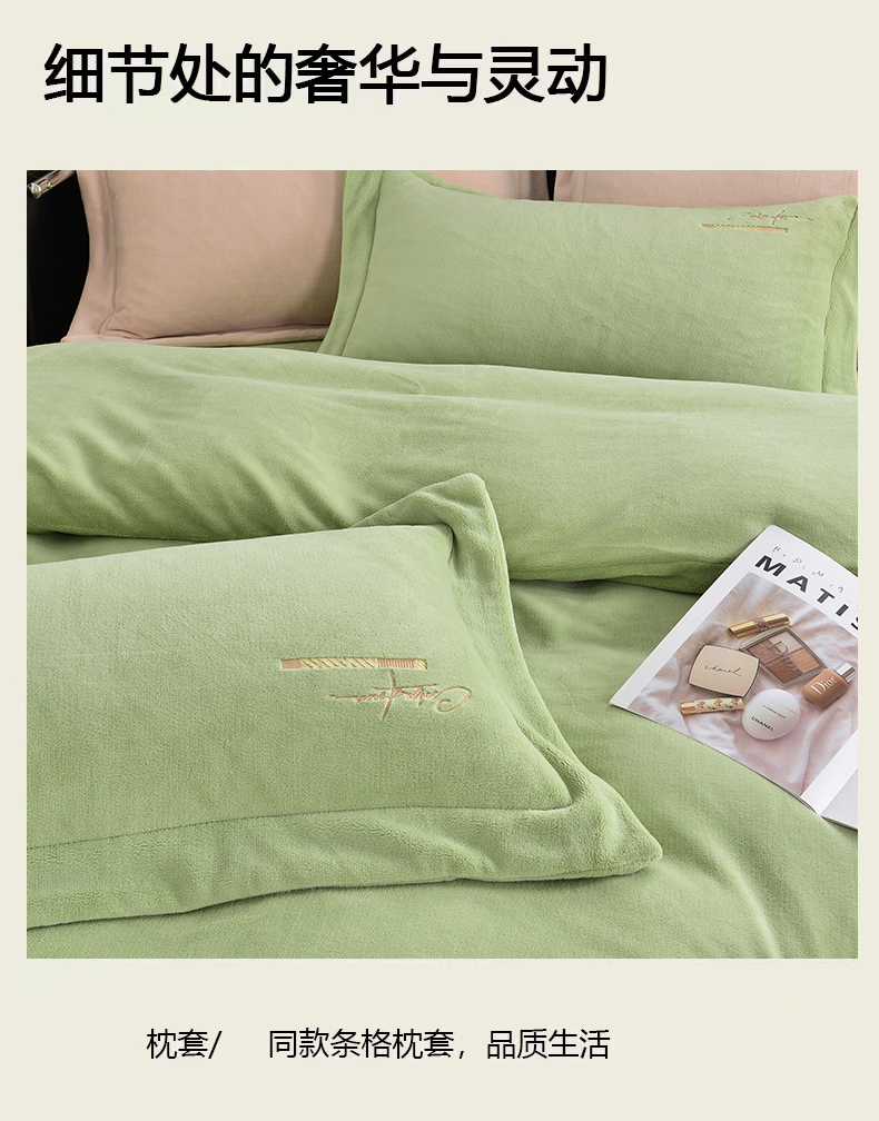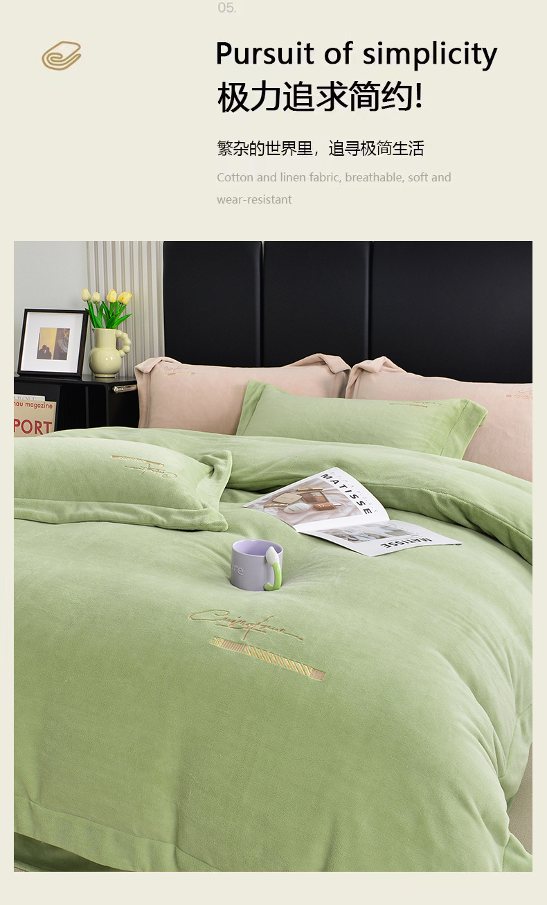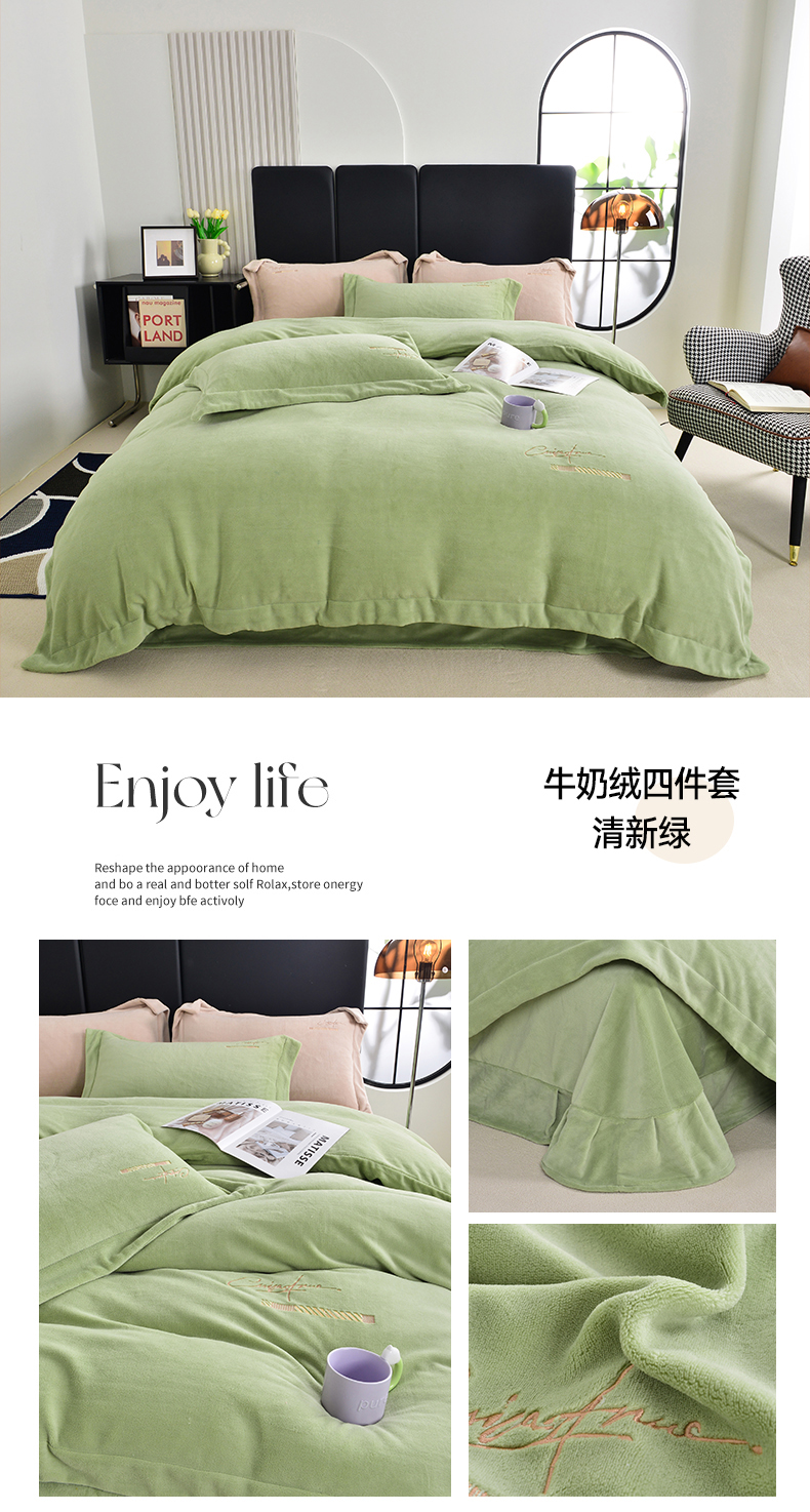 (总)席之家 2025新款刺绣牛奶绒四件套,花语-卡其玉,花语-奶咖,花语-青柠绿,花语-少女粉