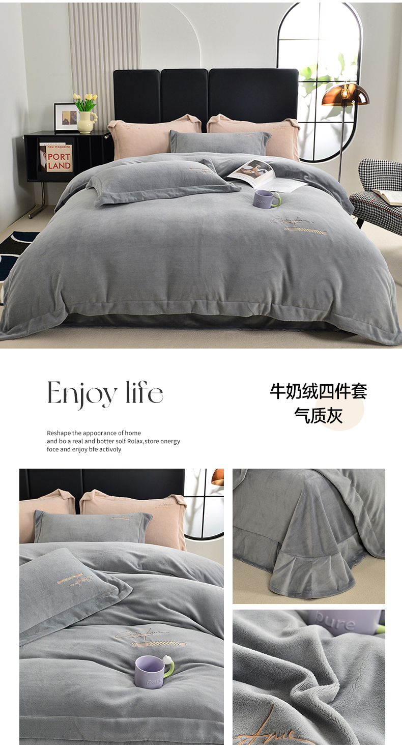 (总)席之家 2024新款A类纯色加厚牛奶绒四件套
