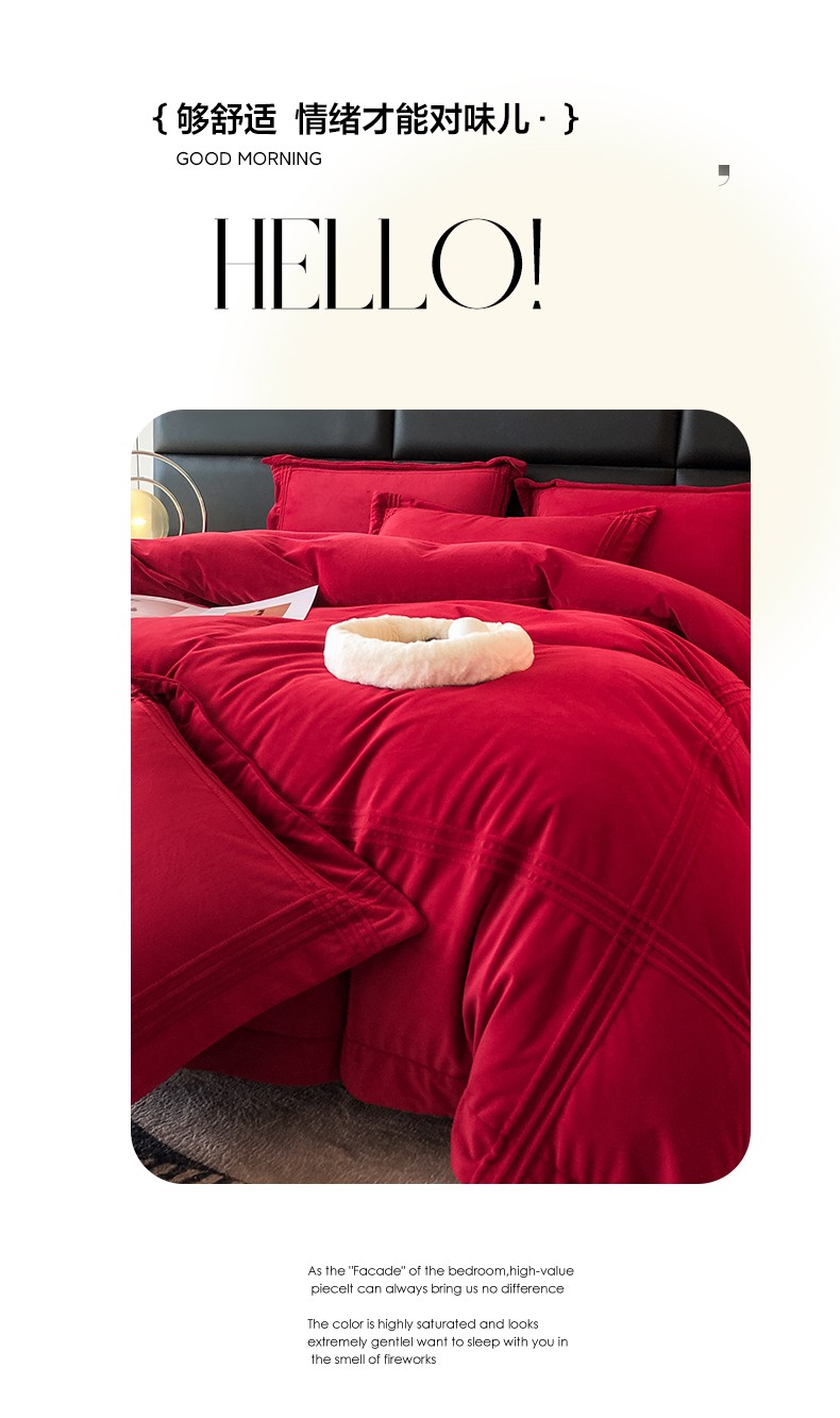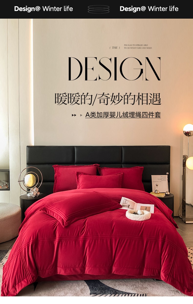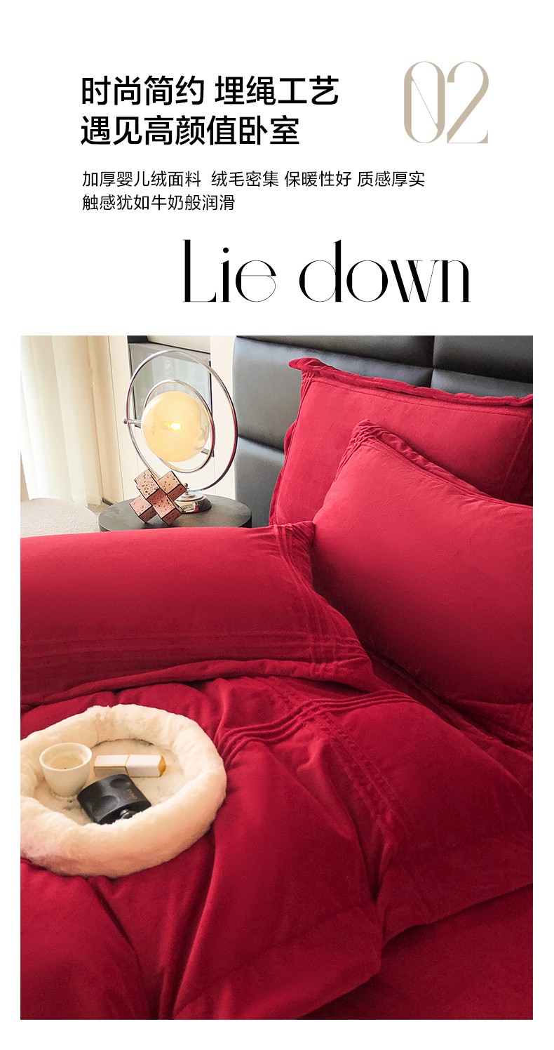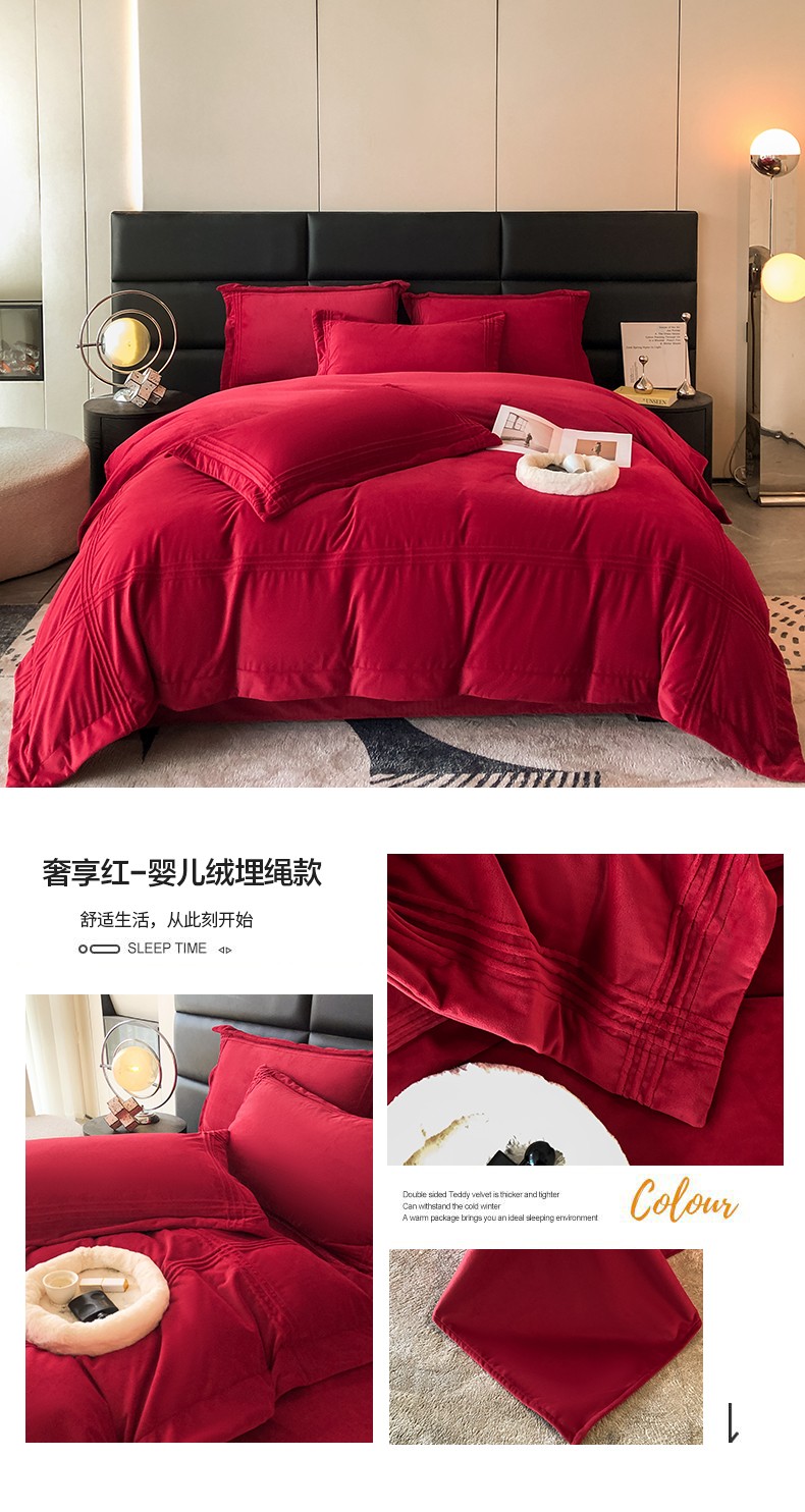商品名称:卡巴伦 2023新款婴儿绒A类埋绳工艺款四件套 奢享红