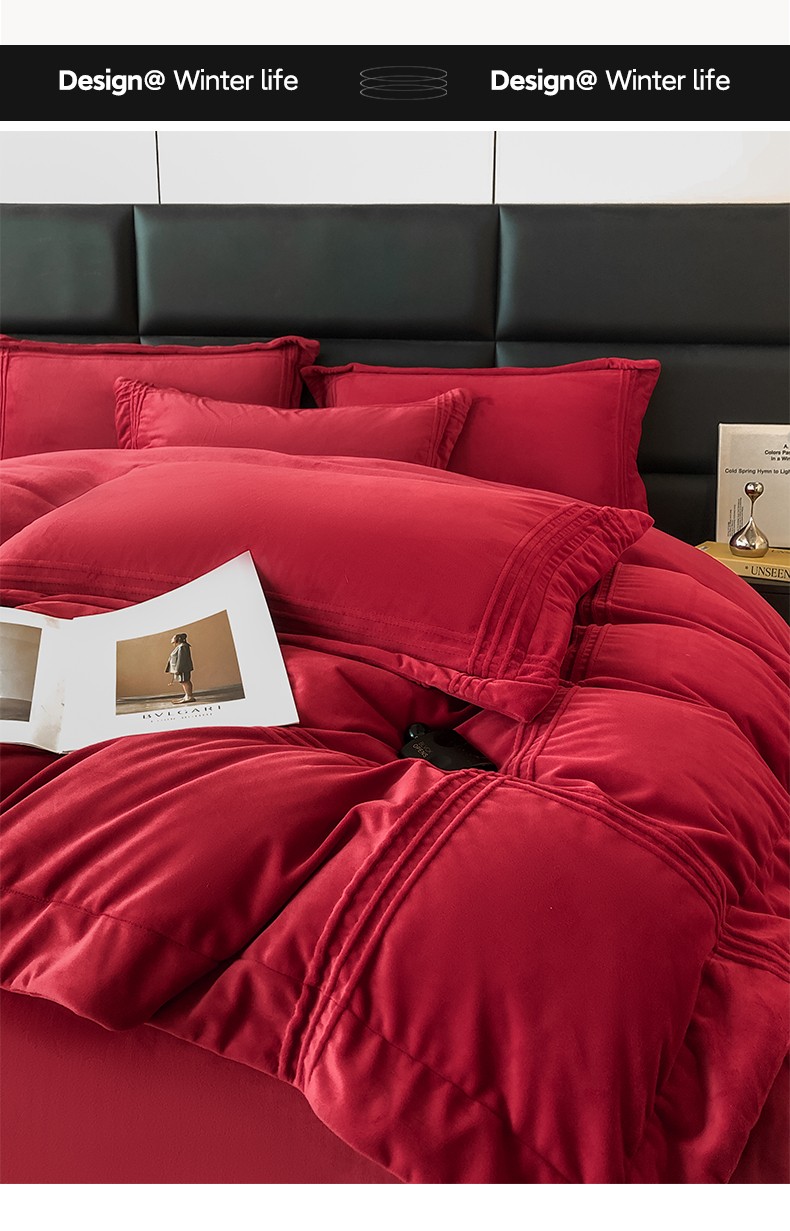 卡巴伦 2023新款婴儿绒A类埋绳工艺款四件套 奢享红