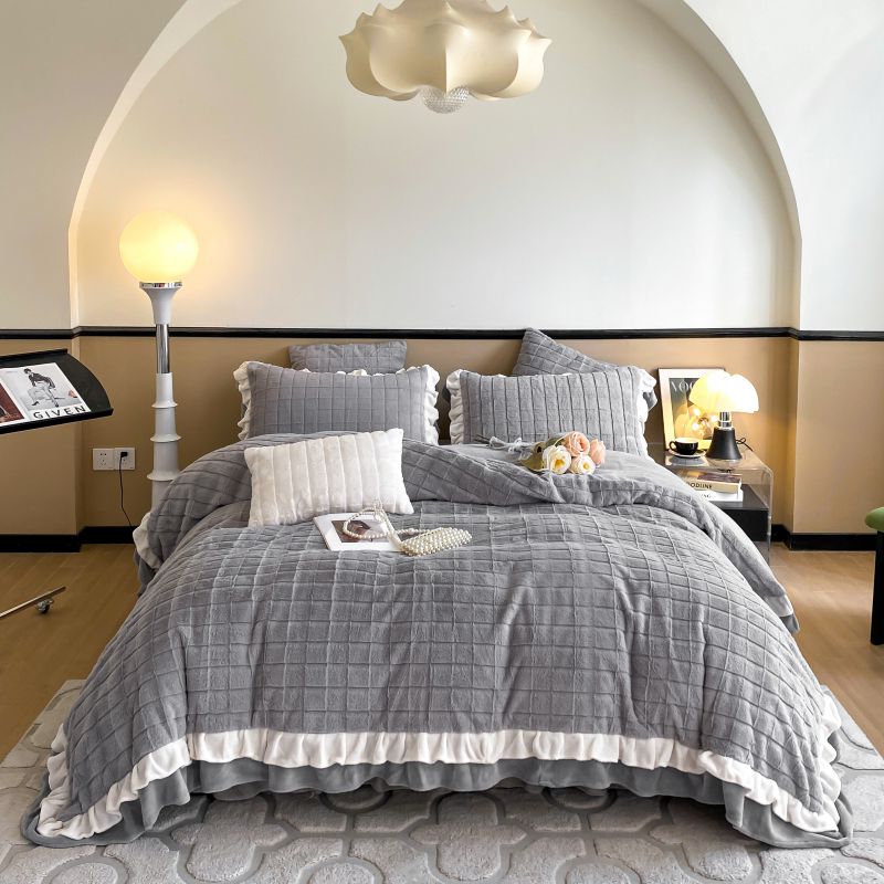 (总)金麦家纺 2025新款牛奶绒撞色拼边四件套贝拉系列,贝拉-海洋蓝,贝拉-宾利蓝,贝拉-粉色,贝拉-灰色,贝拉-香槟色