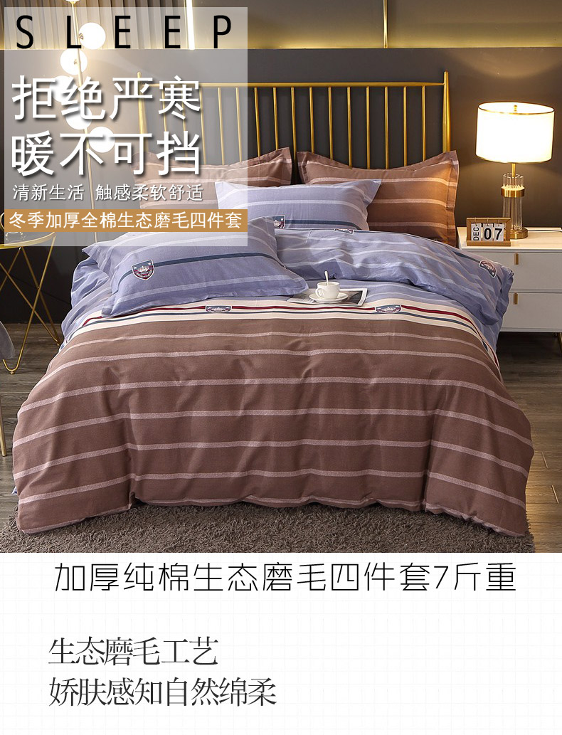商品名称:总-2024新款风尚系多规格全棉生态磨毛四件套印花纯棉磨毛四件套三件套