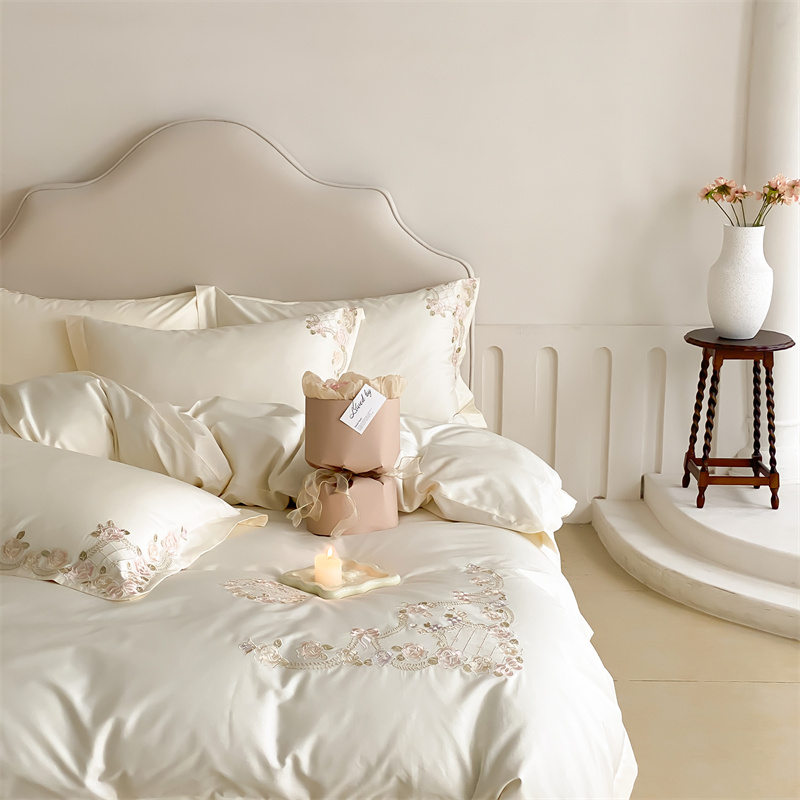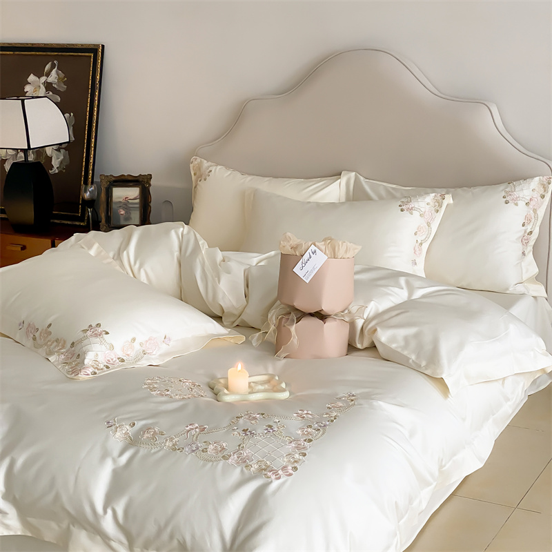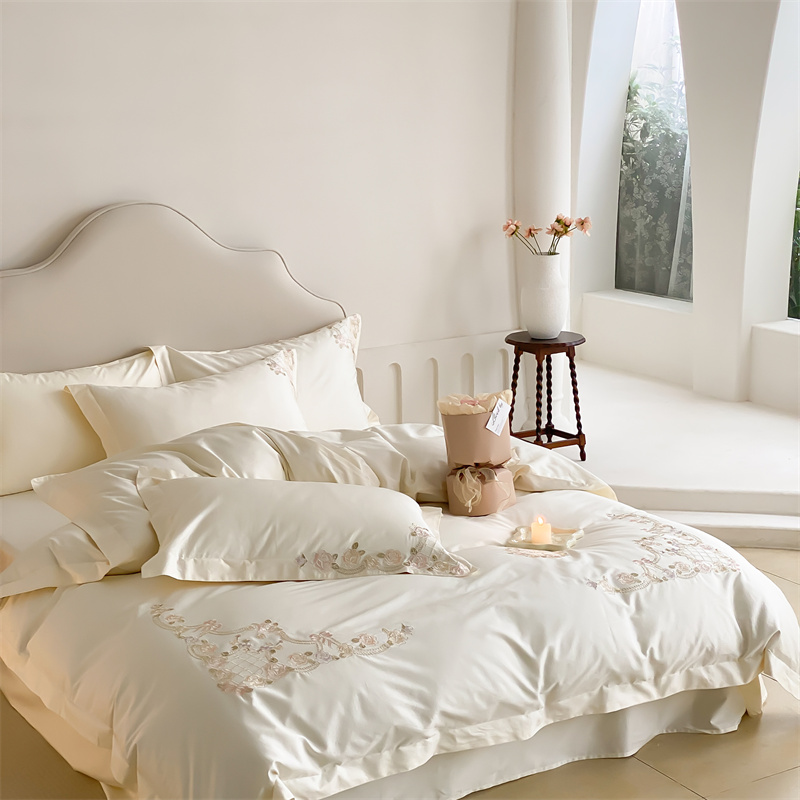 商品名称:馨蕊家居 2023新款100支CR工艺全棉四件套-棉卡洛琳 卡洛琳-月光白