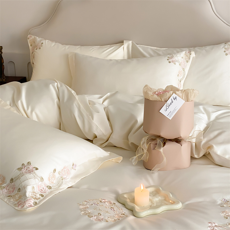 (总)馨蕊家居 2025新款春夏新品天丝印花80SLF奥地利兰精天丝四件套-告白,天丝告白-蔷薇粉,天丝告白-婉若紫