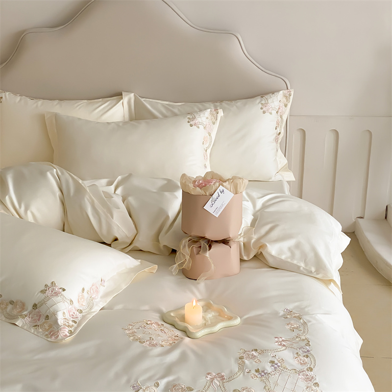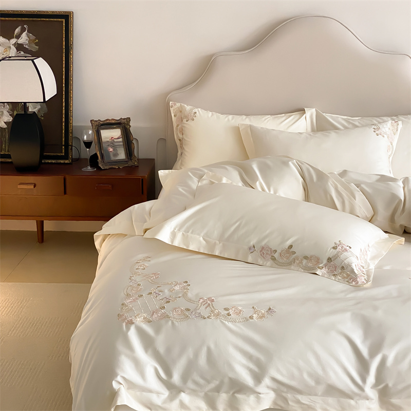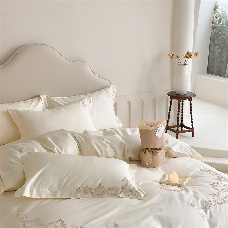 馨蕊家居 2023新款100支CR工艺全棉四件套-棉卡洛琳 卡洛琳-月光白
