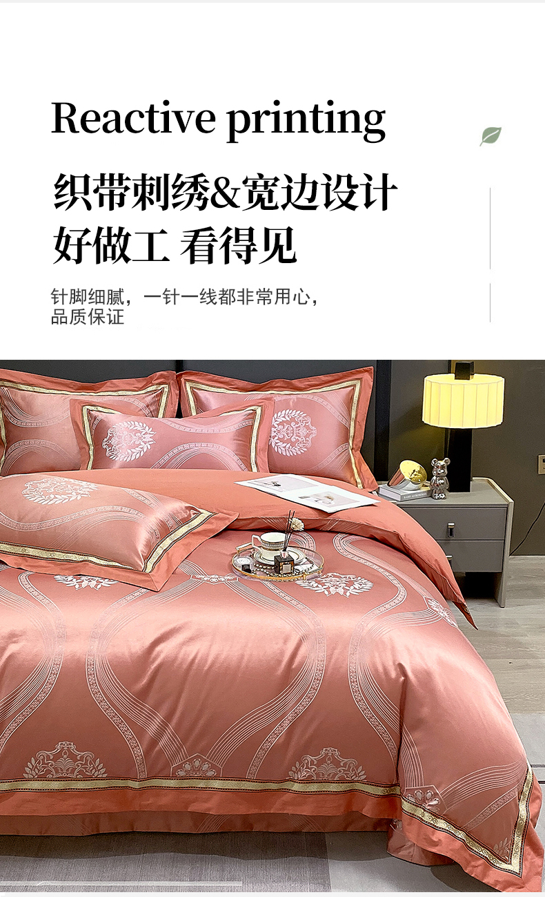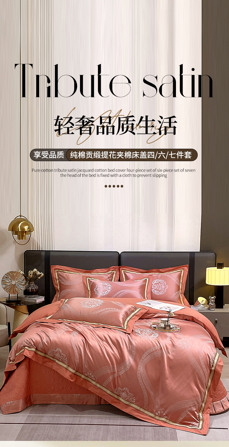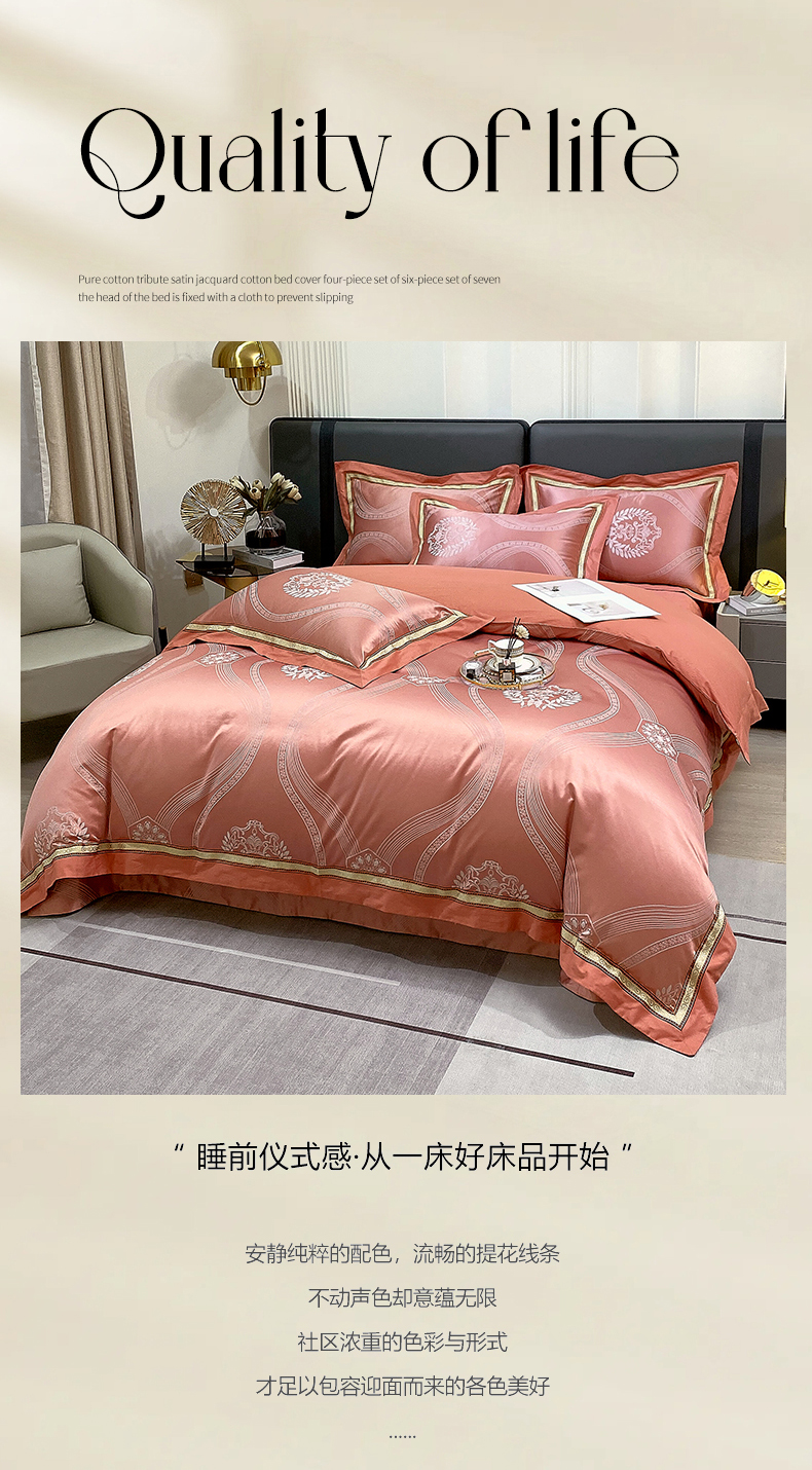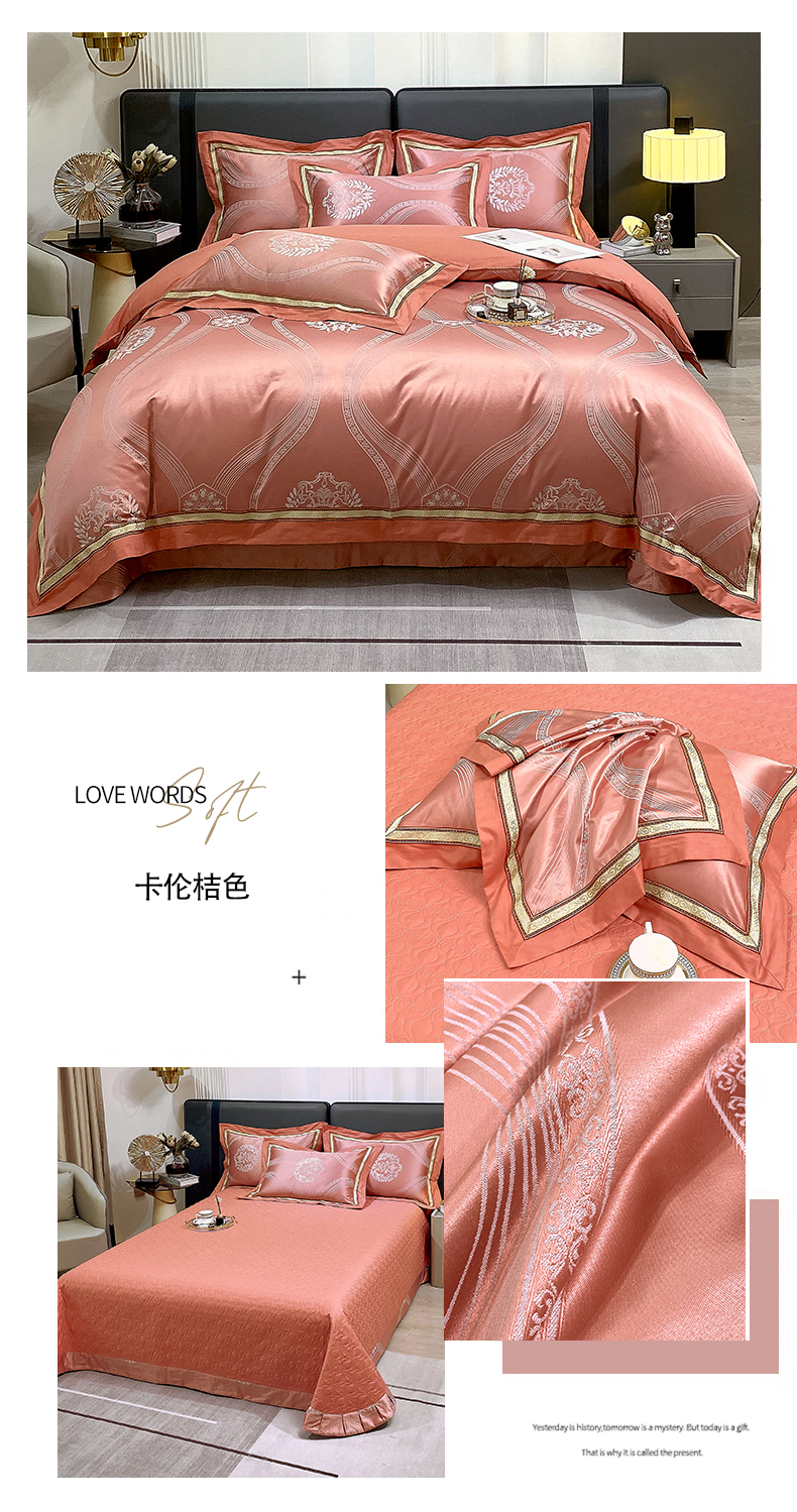商品名称:小时代家纺 2023新款纯棉贡缎提花夹棉床盖四件套 卡伦桔色