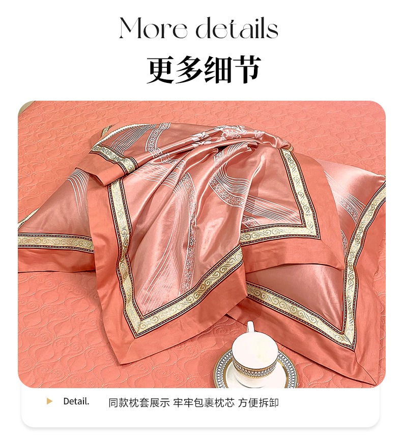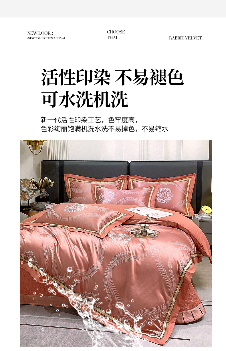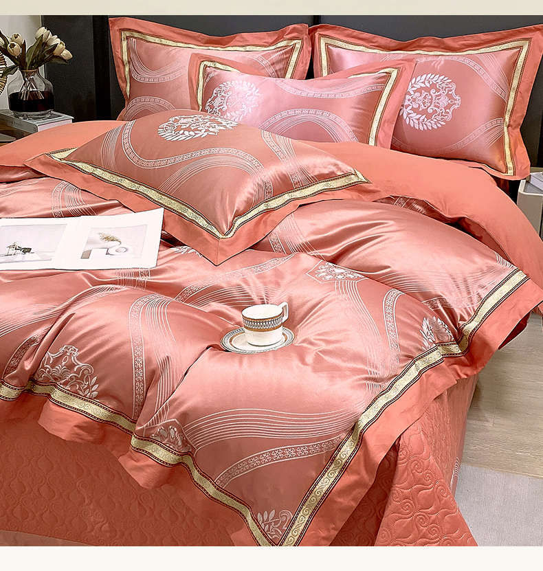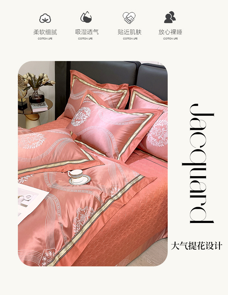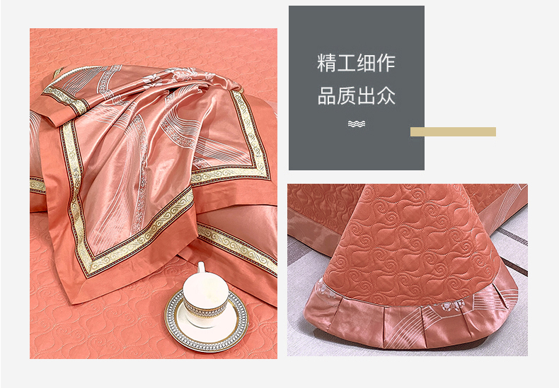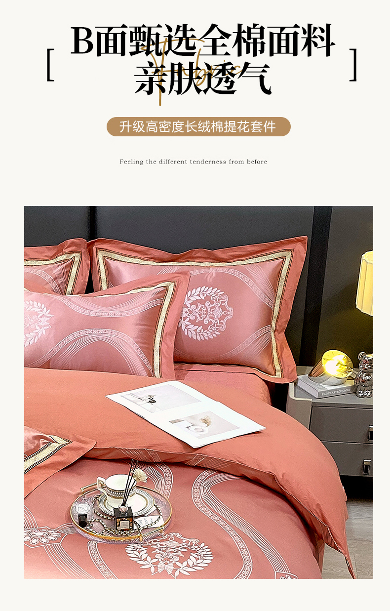 商品名称:小时代家纺 2023新款纯棉贡缎提花夹棉床盖四件套 卡伦桔色