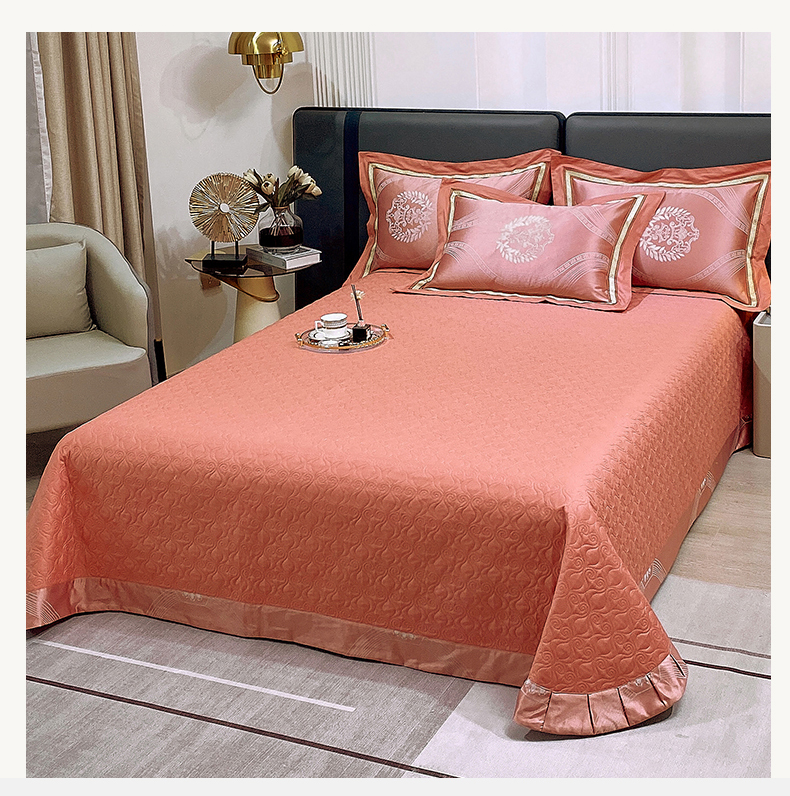 小时代家纺 2023新款纯棉贡缎提花夹棉床盖四件套 卡伦桔色