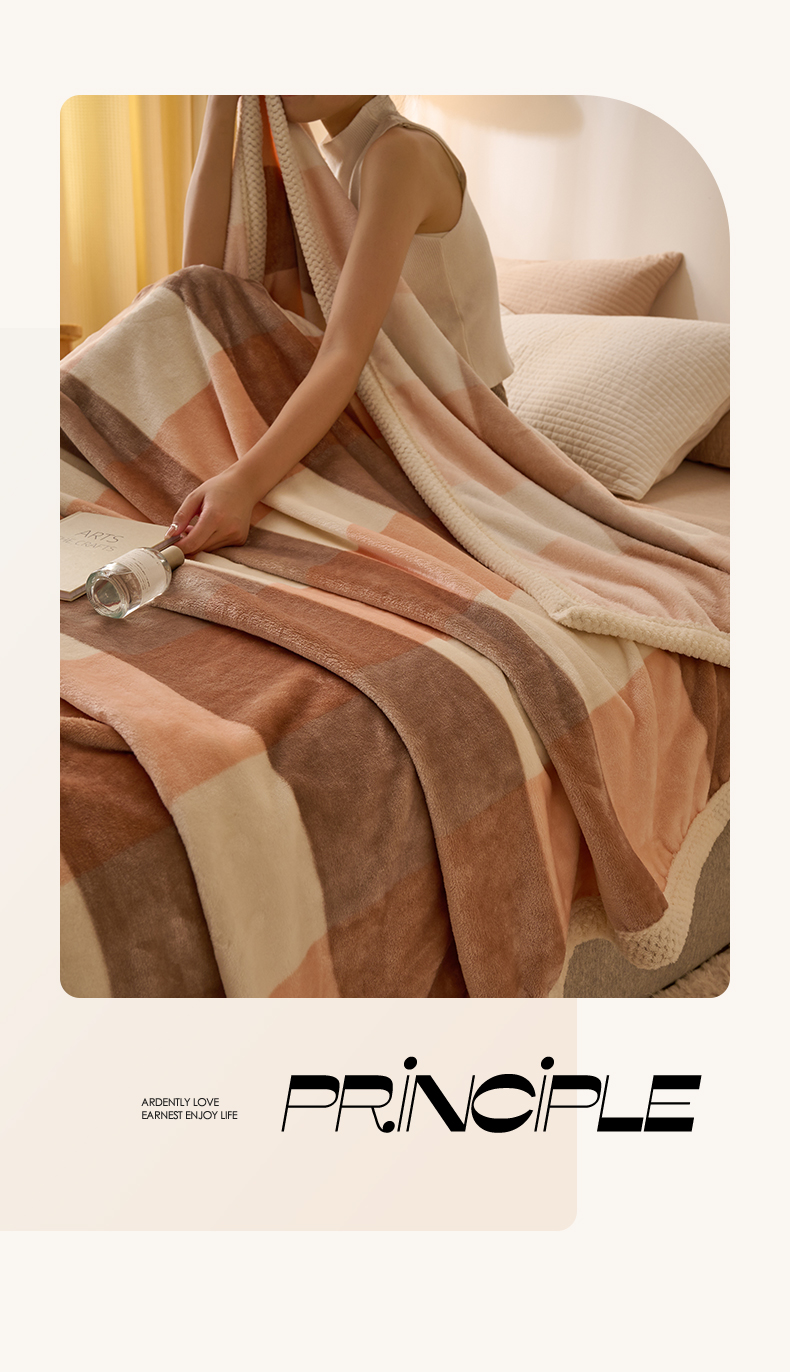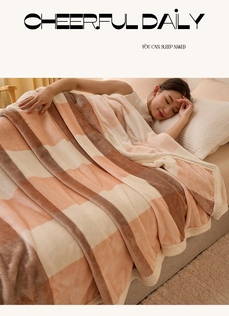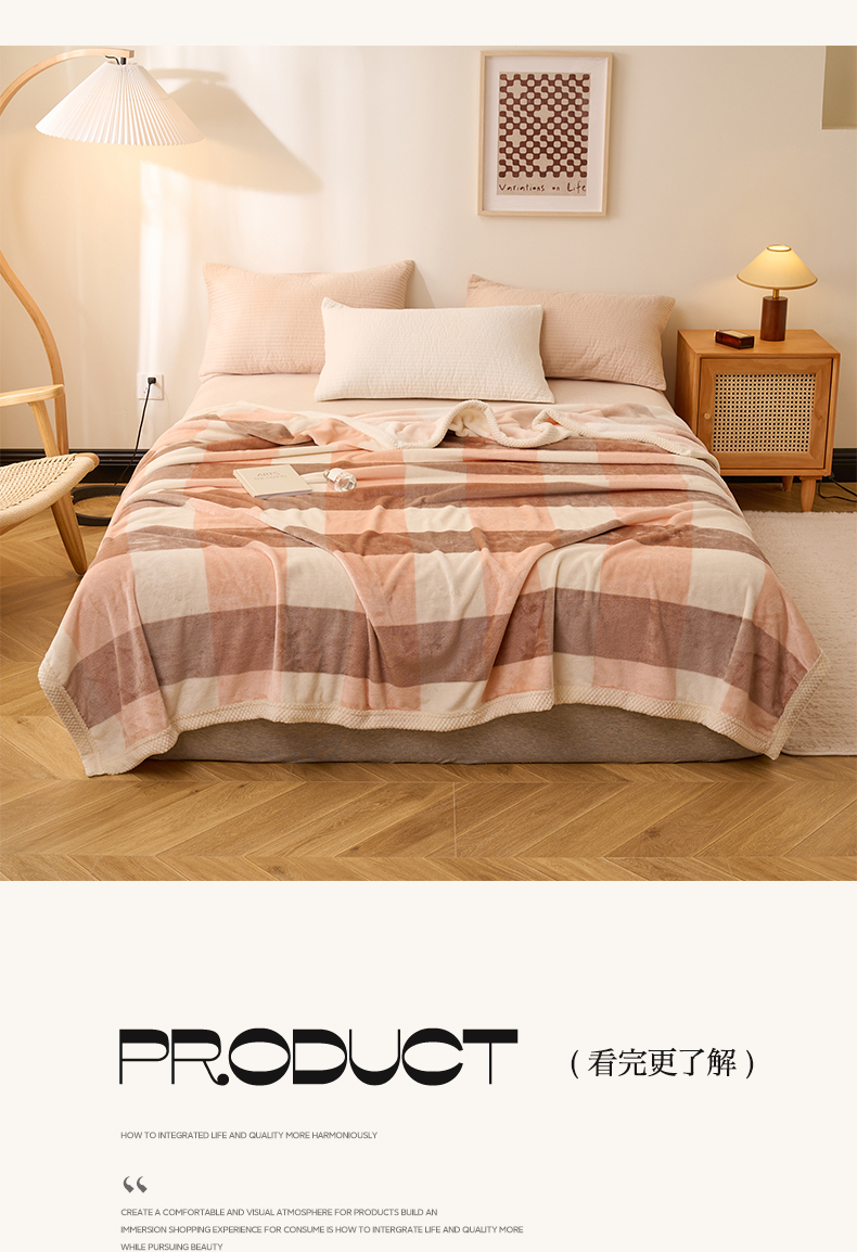 吾诺 2023秋冬 双面加厚无印风双面牛奶绒毯子 法莱绒毛毯 灰粉大格