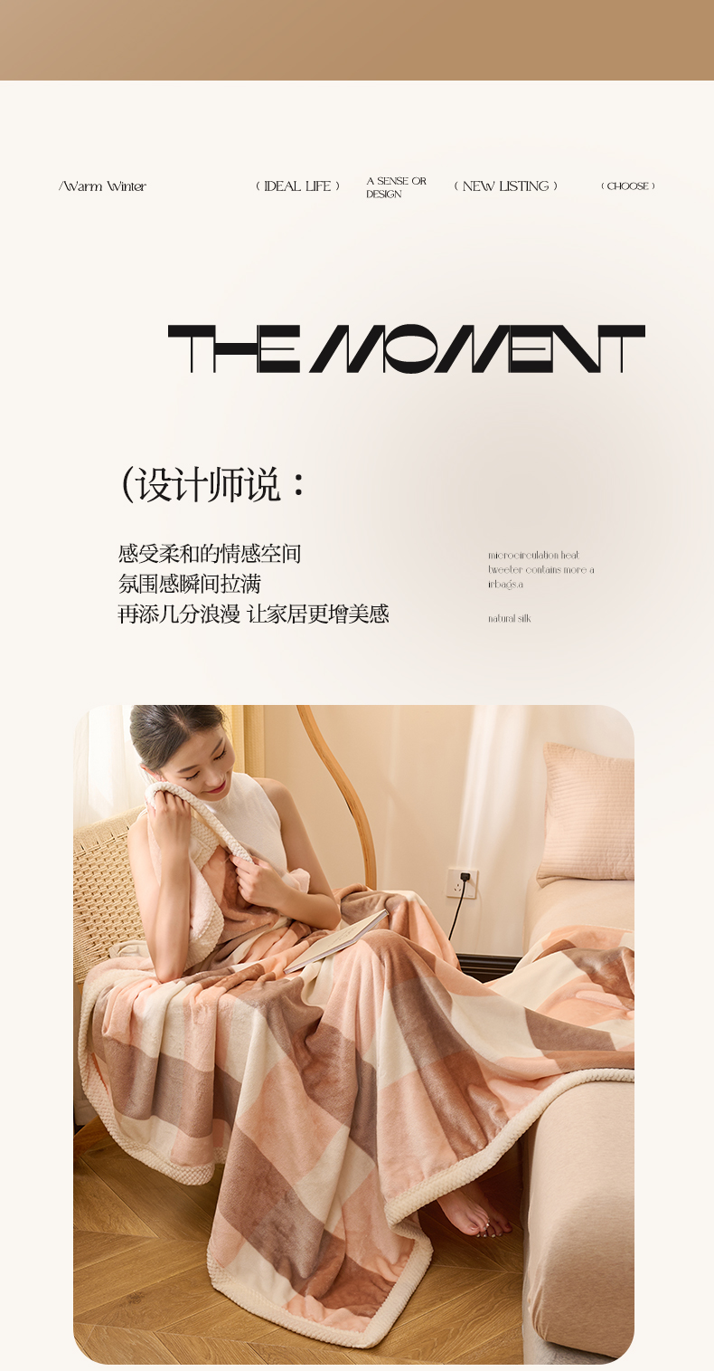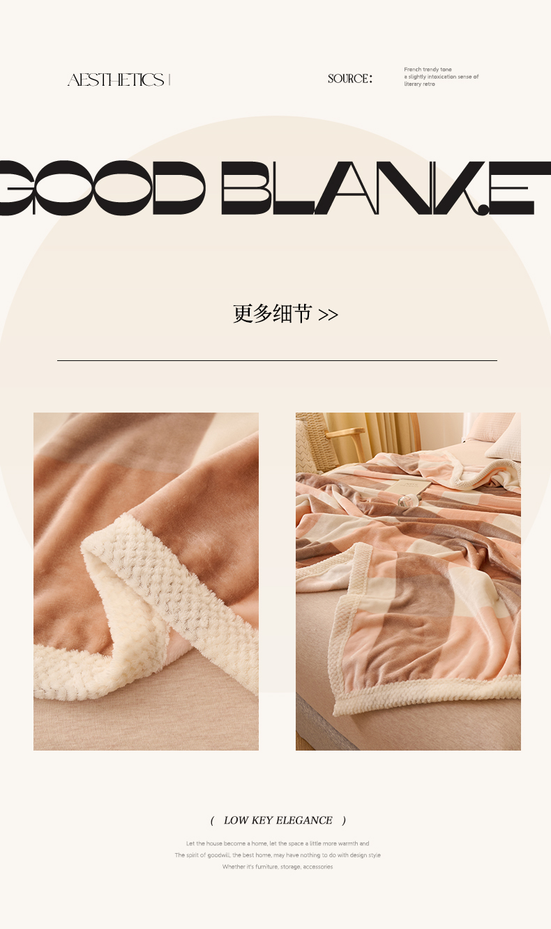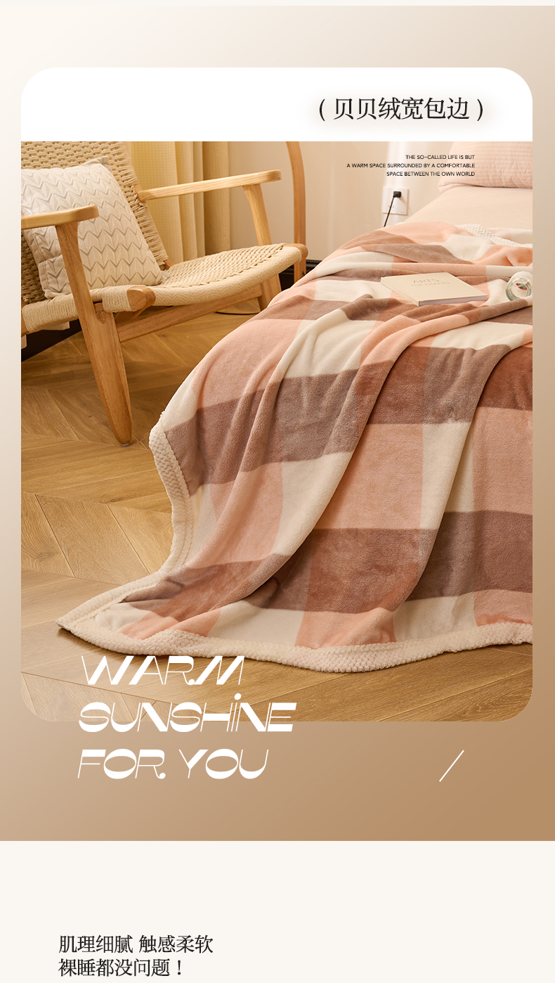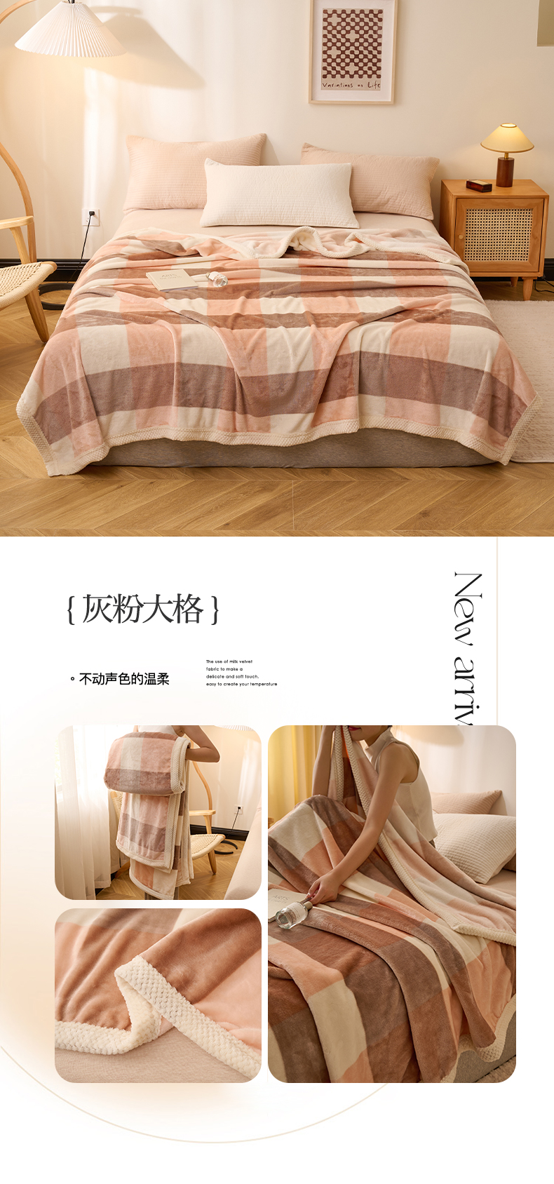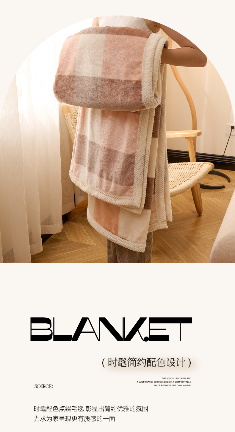 商品名称:吾诺 2023秋冬 双面加厚无印风双面牛奶绒毯子 法莱绒毛毯 灰粉大格