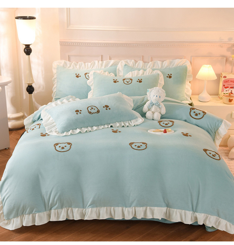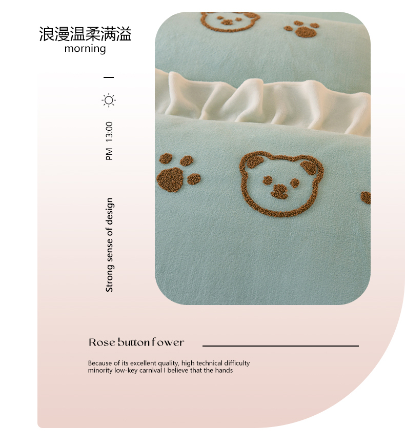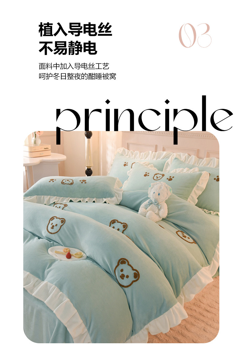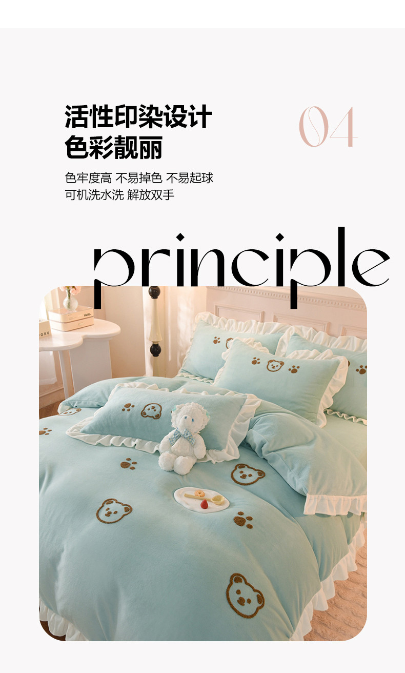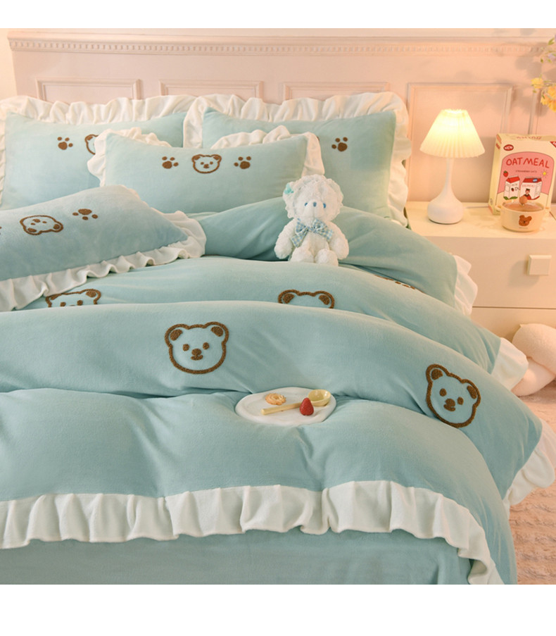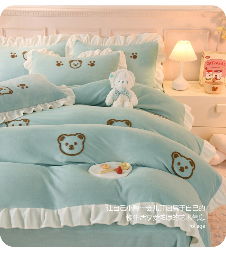 商品名称:菲儿家纺 2023新款牛奶绒毛巾绣四件套 哇塞小熊-豆绿