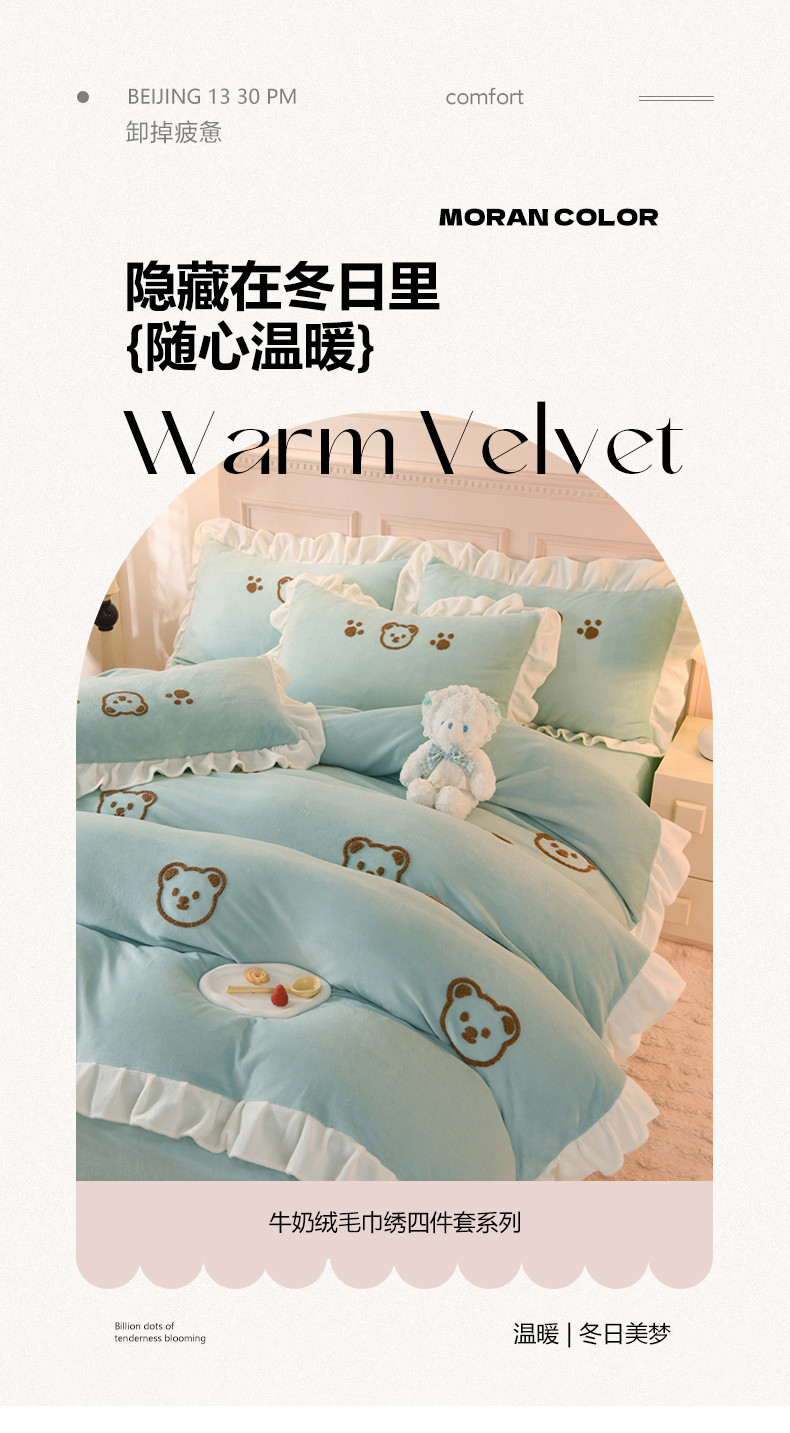 (总)菲儿家纺 2023新款毛巾绣牛奶绒四件套,哇塞小熊-豆绿,哇塞小熊-金桔黄,哇塞小熊-浅粉,哇塞小熊-优雅紫,哇塞小熊-月光蓝,小熊猫-奶黄,小熊猫-少女粉,小熊猫-松石绿,小熊猫-星空蓝,小熊猫-芋泥紫