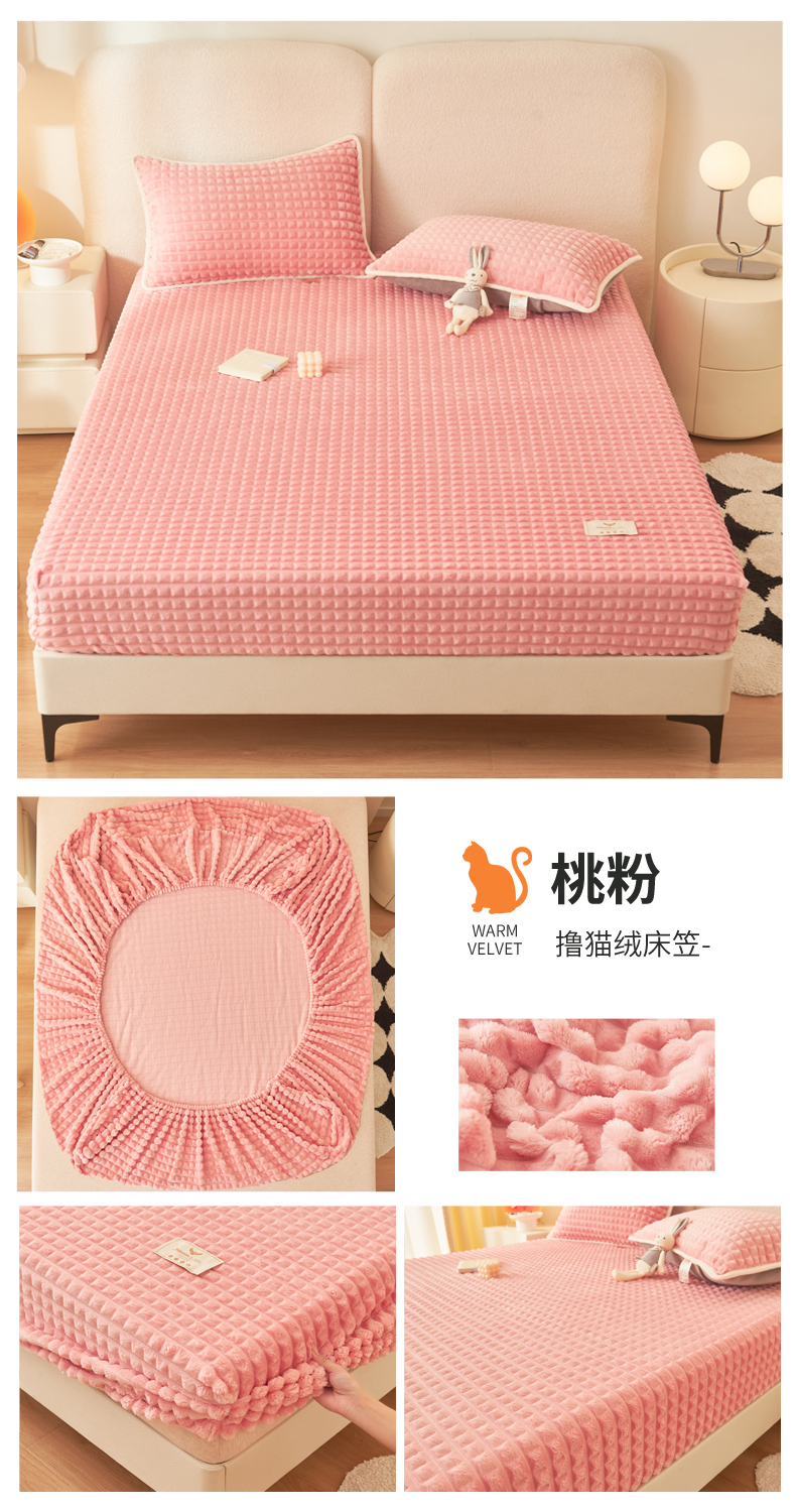 • 91家纺网 家纺一手货源 找家纺 21度C 2023新款撸猫绒床笠 撸猫绒-桃粉