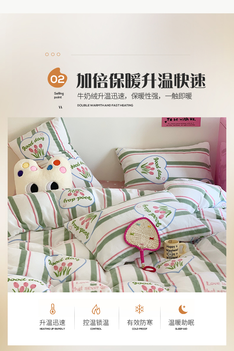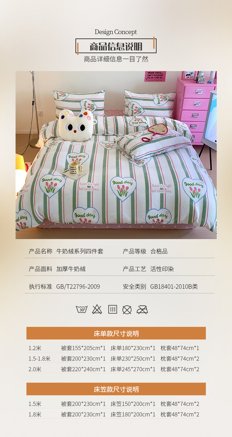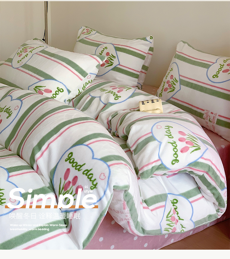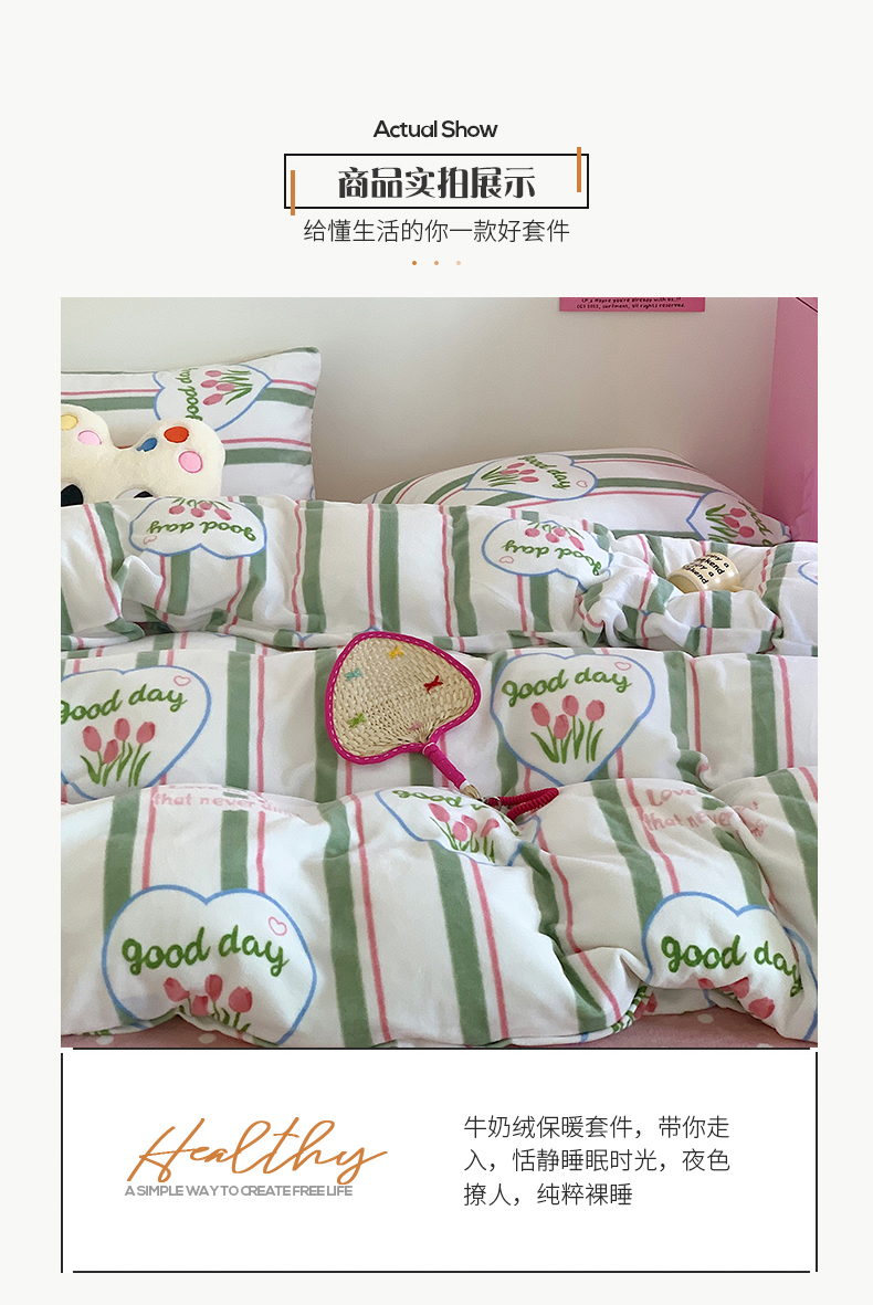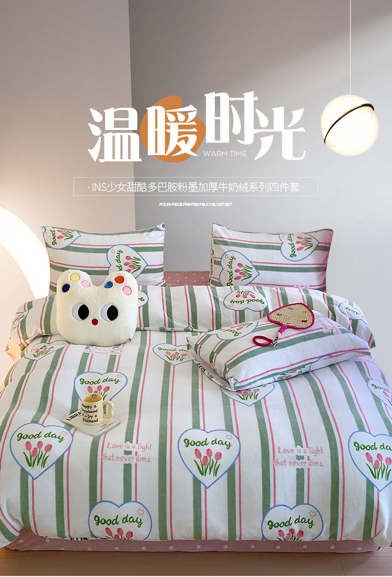 桃子家居 2023新款ins少女甜酷多巴胺粉墨加厚牛奶绒系列四件套 绒-莱茵