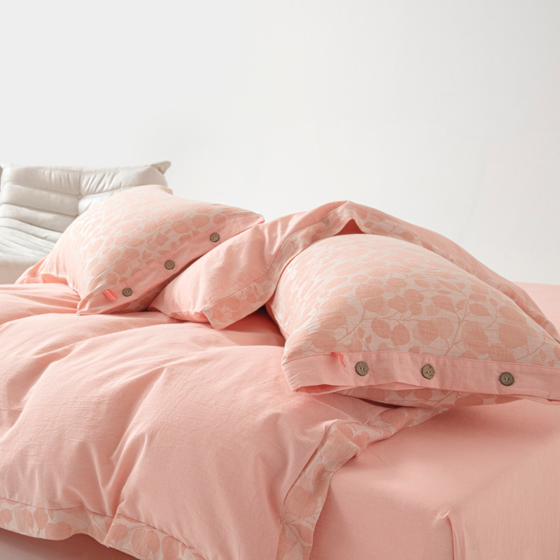 当前位置: 91家纺网 > 商品网购 > 床品套件 > 四件套 > 全棉普通四件套 > 安莱生活 2023新款A类简约棉麻树叶拼边四件套 棉麻拼边纽扣款-纯粉