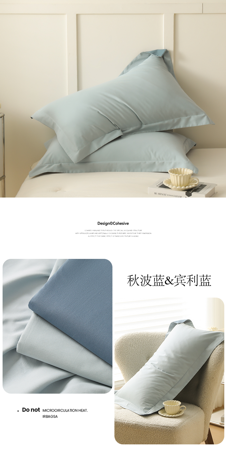 商品名称:2023A类纯色纯棉磨毛单枕套 秋波蓝+宾利蓝