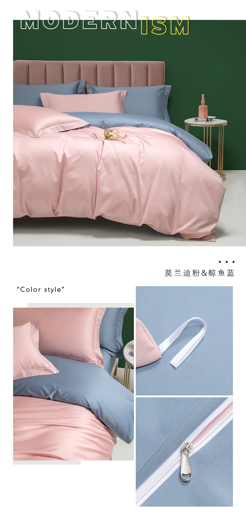 商品名称:云栖家居 2023A类长绒棉纯色单被套 莫兰迪粉&鲸鱼蓝