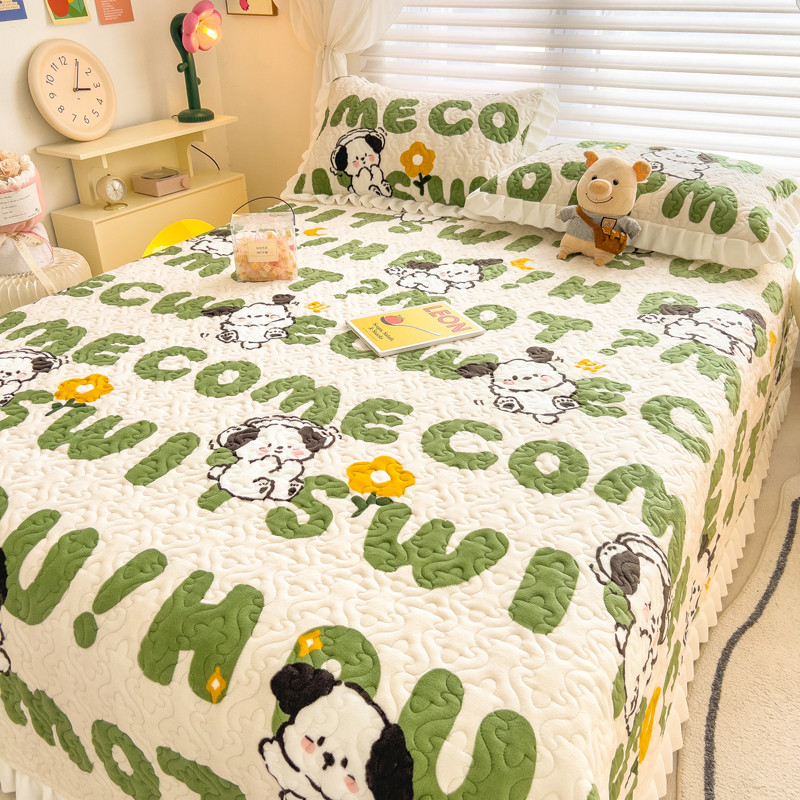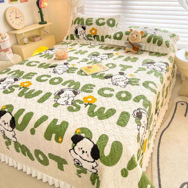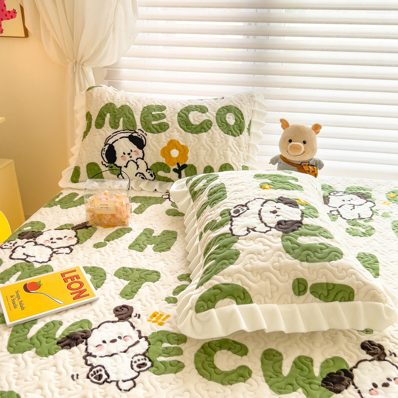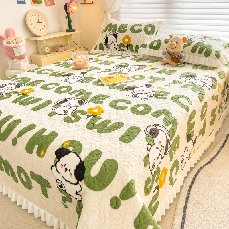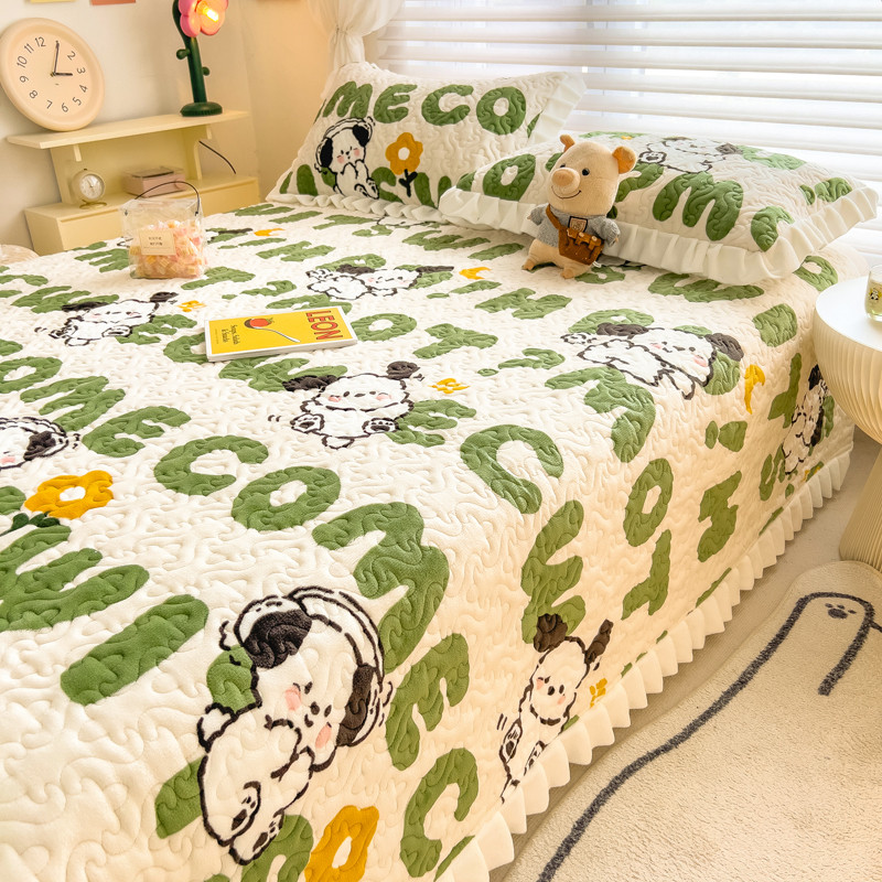 梵朴 2023年新款牛奶绒夹棉床盖 欢乐萌宠