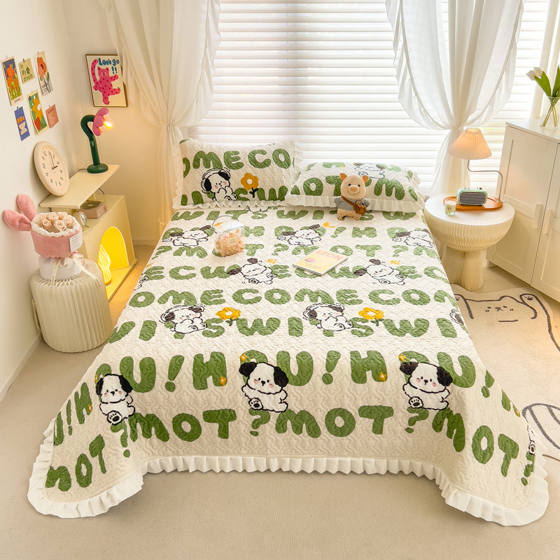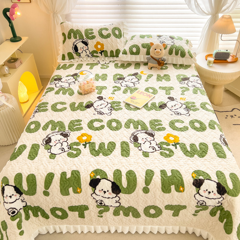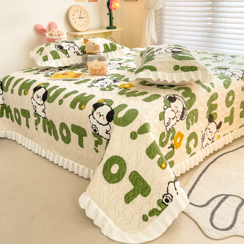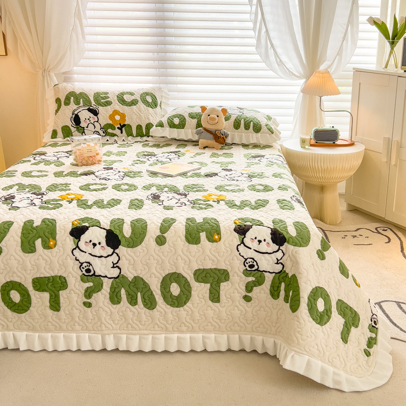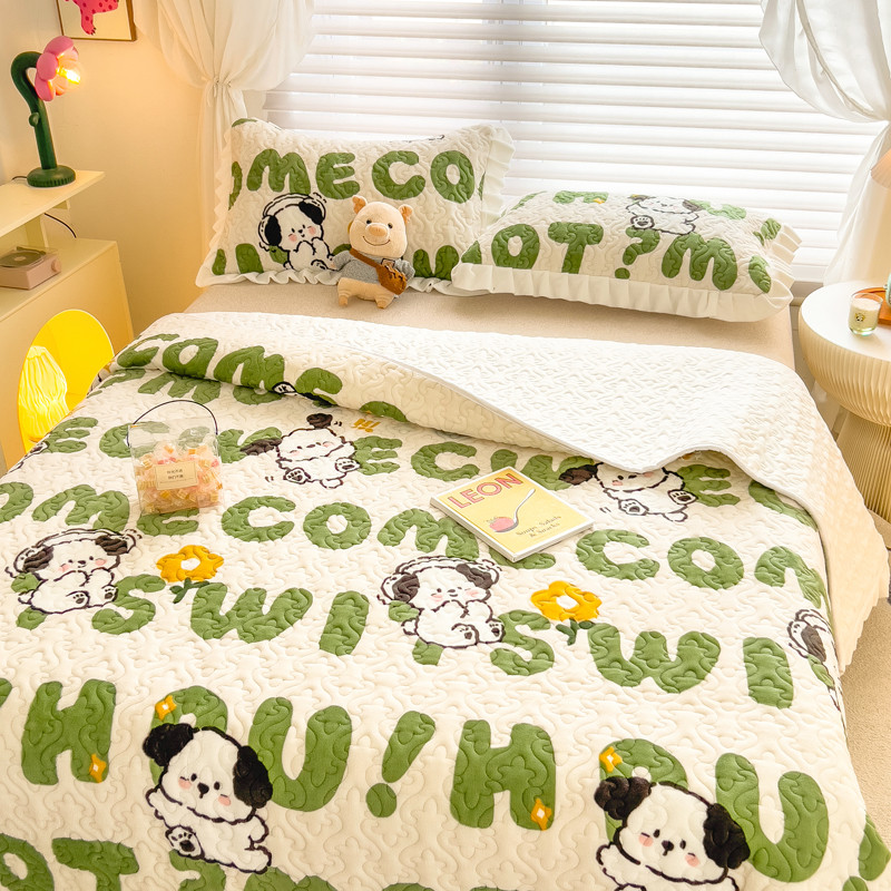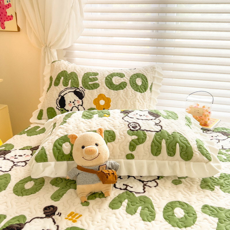 梵朴 2023年新款牛奶绒夹棉床盖 欢乐萌宠