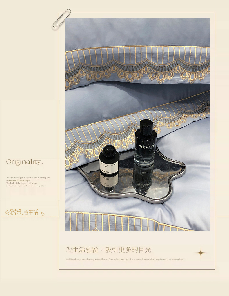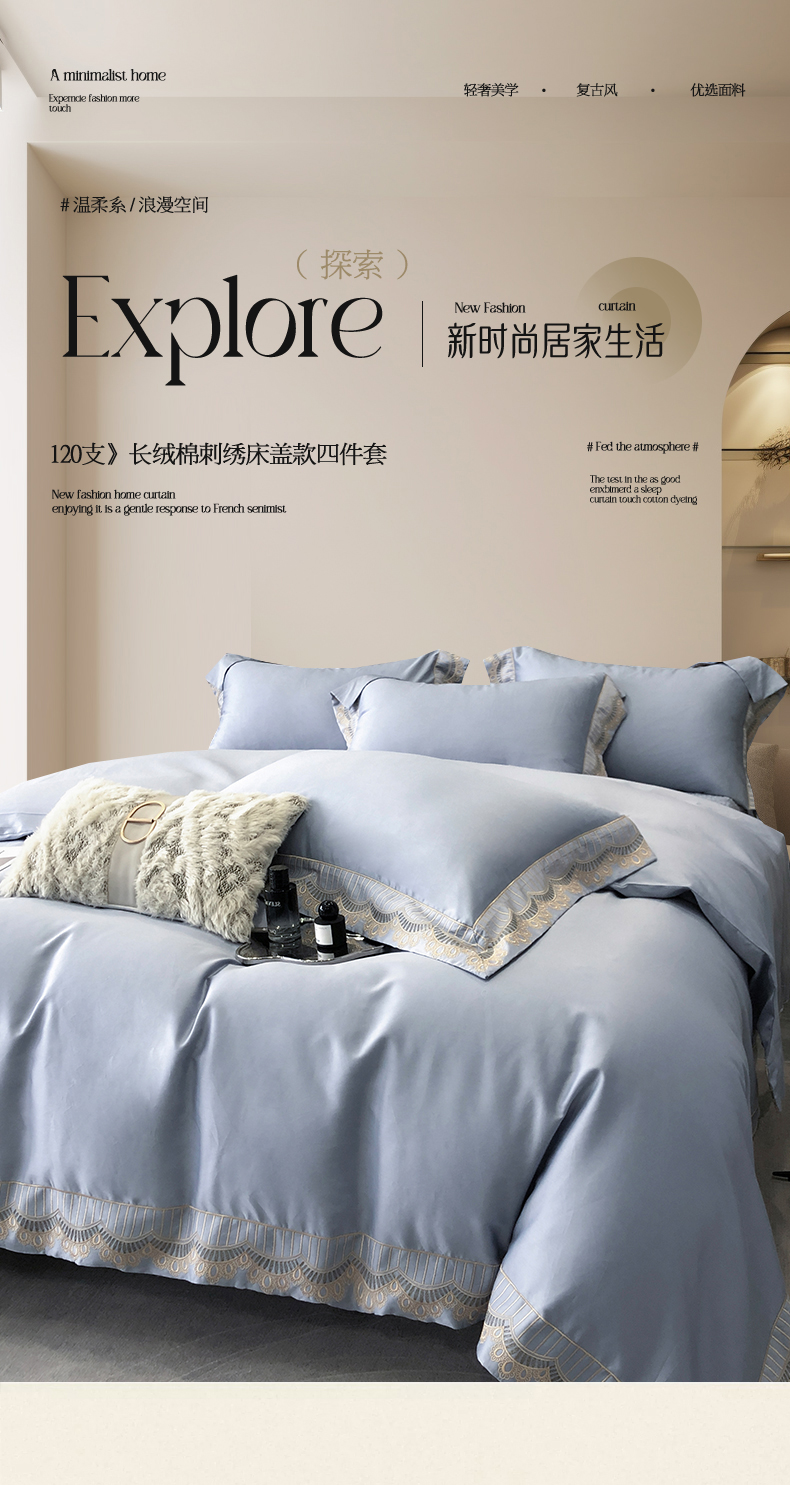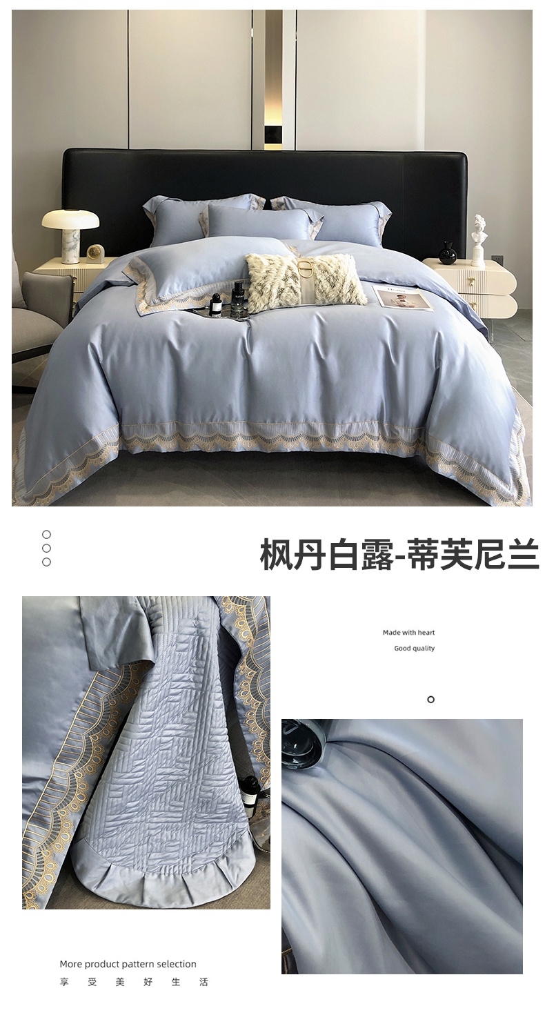 商品名称:保罗圣迪奥 120支长绒棉刺绣床盖款四件套 枫丹白露-蒂芙尼兰