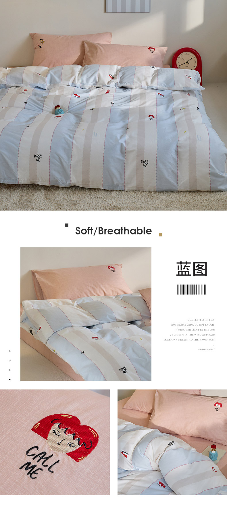 (总)2025新款全棉印花加绣花四件套,斑点狗,举手兔-咖,举手兔-蓝,快乐黑猫,猫小乐,小旺仔,熊小萌