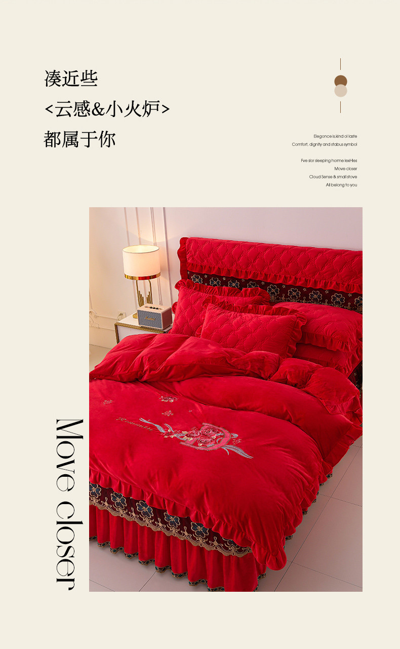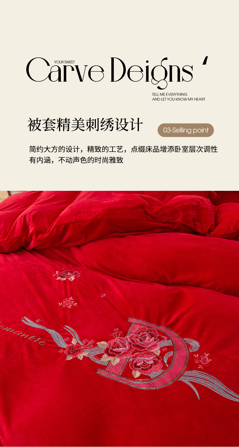 源梦家纺 2023新款A类230克婴儿绒四件套-盛世牡丹 盛世牡丹-大红色