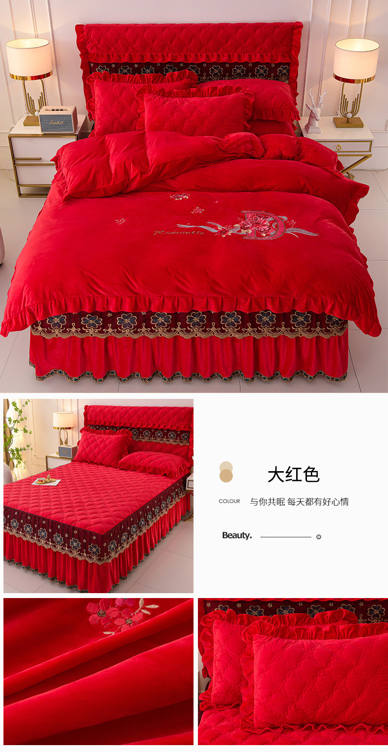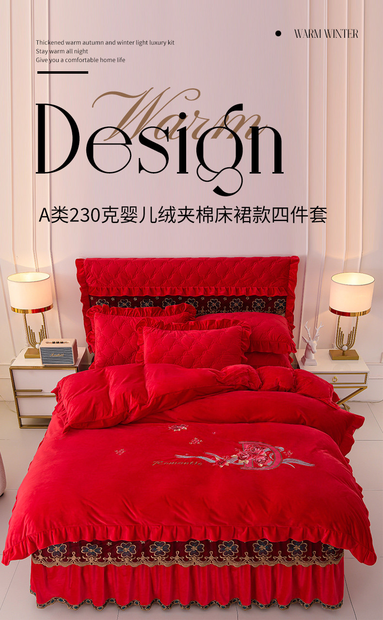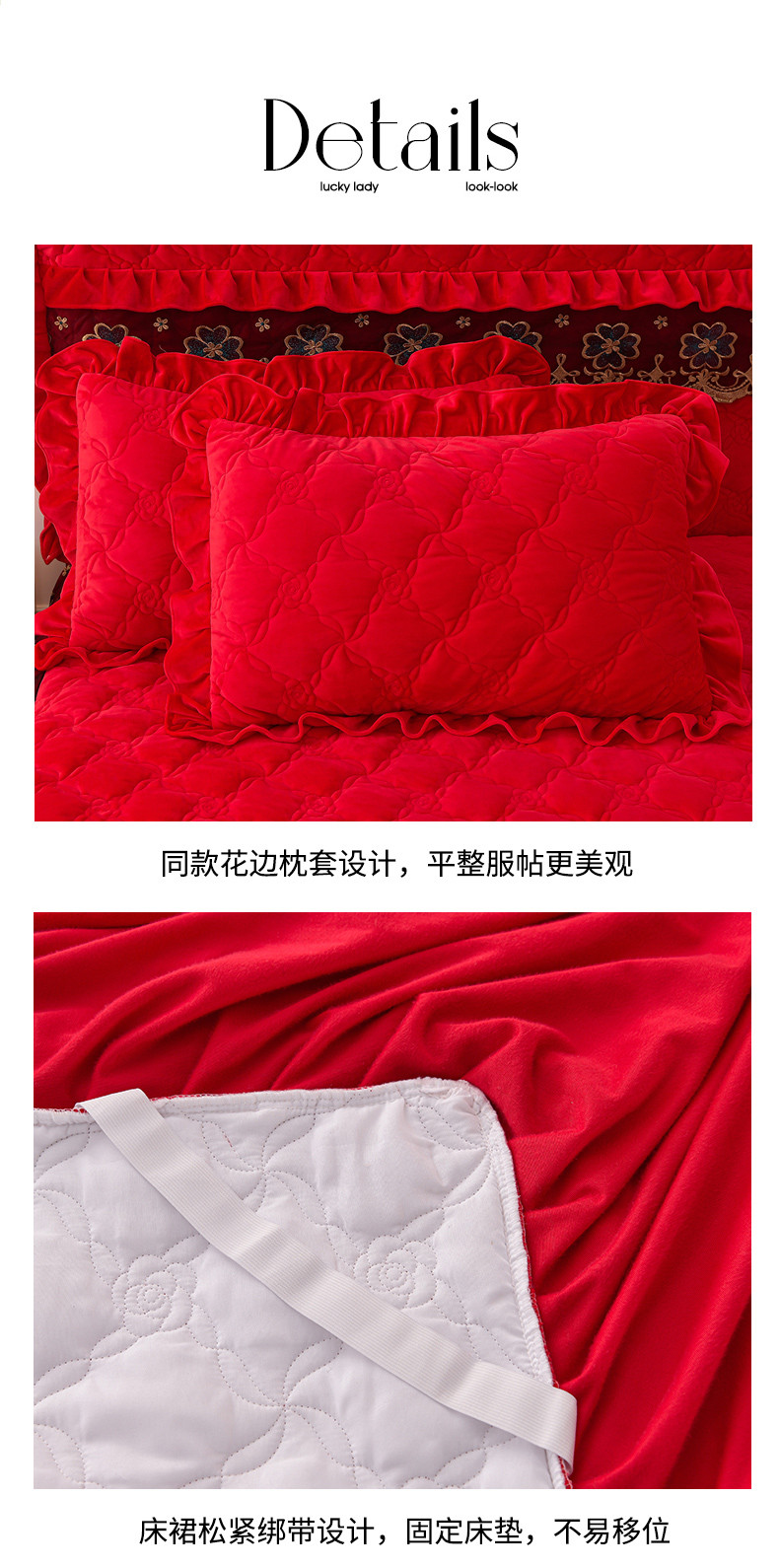 (总)怡源梦 2025新款A类牛奶绒夹棉床裙单件-甜心公主系列,米白色,大红色,粉玉色,灰色,咖色,绿色,紫色