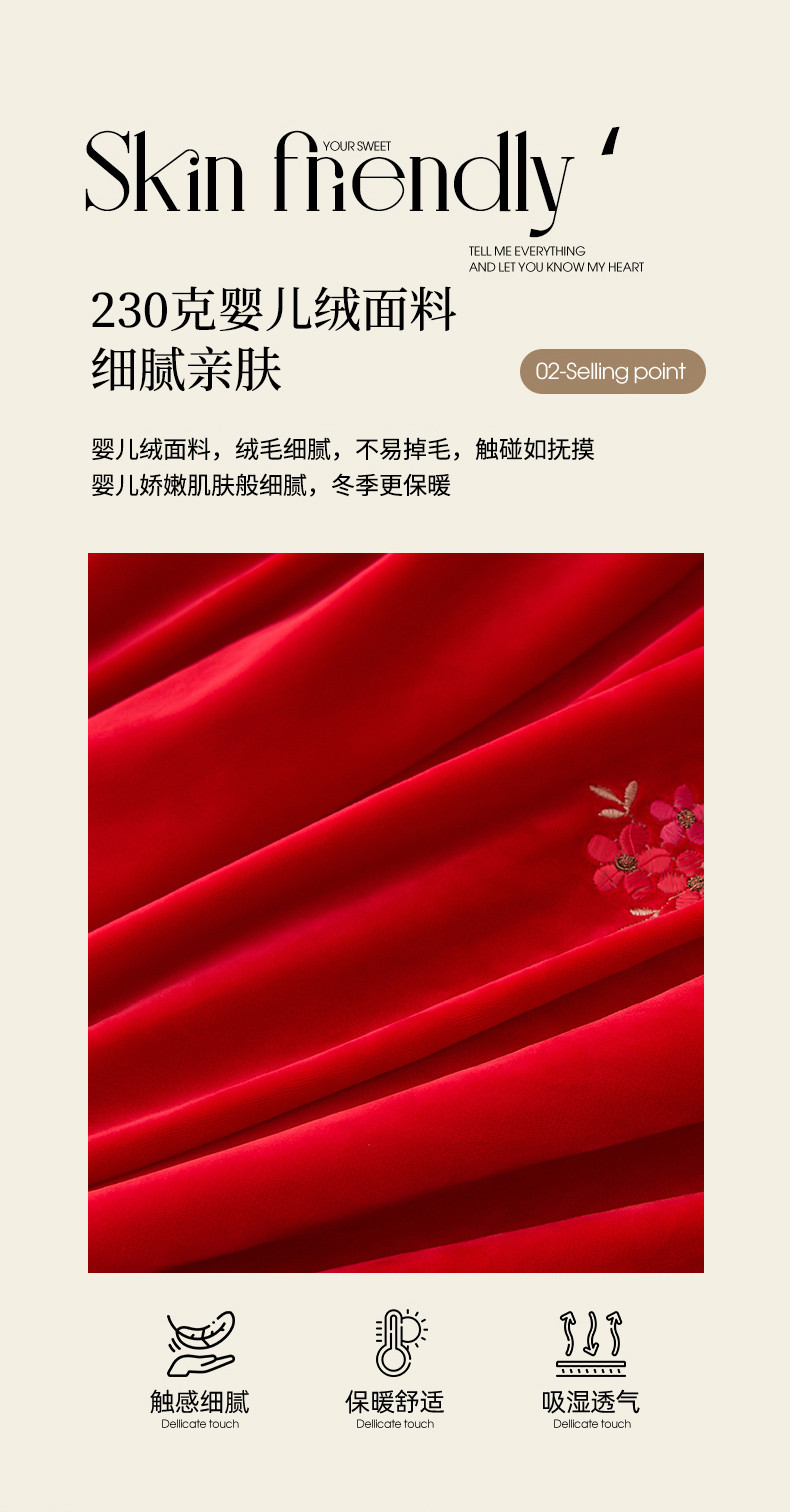 商品名称:源梦家纺 2023新款A类230克婴儿绒四件套-盛世牡丹 盛世牡丹-大红色